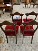 4 Salonstole i mahogni, med rødesædder. Stolene fremstår med pletter på sæderne og løse i ryggen.Anno:1880-1890