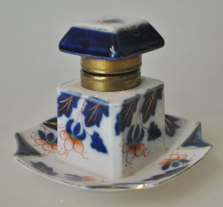 Japansk blækhus i Imari porcelæn, 19. årh. Med håndmalede dekorationer. H.:7,5 cm. B.: 9,5 cm.Emne nummer: 24425