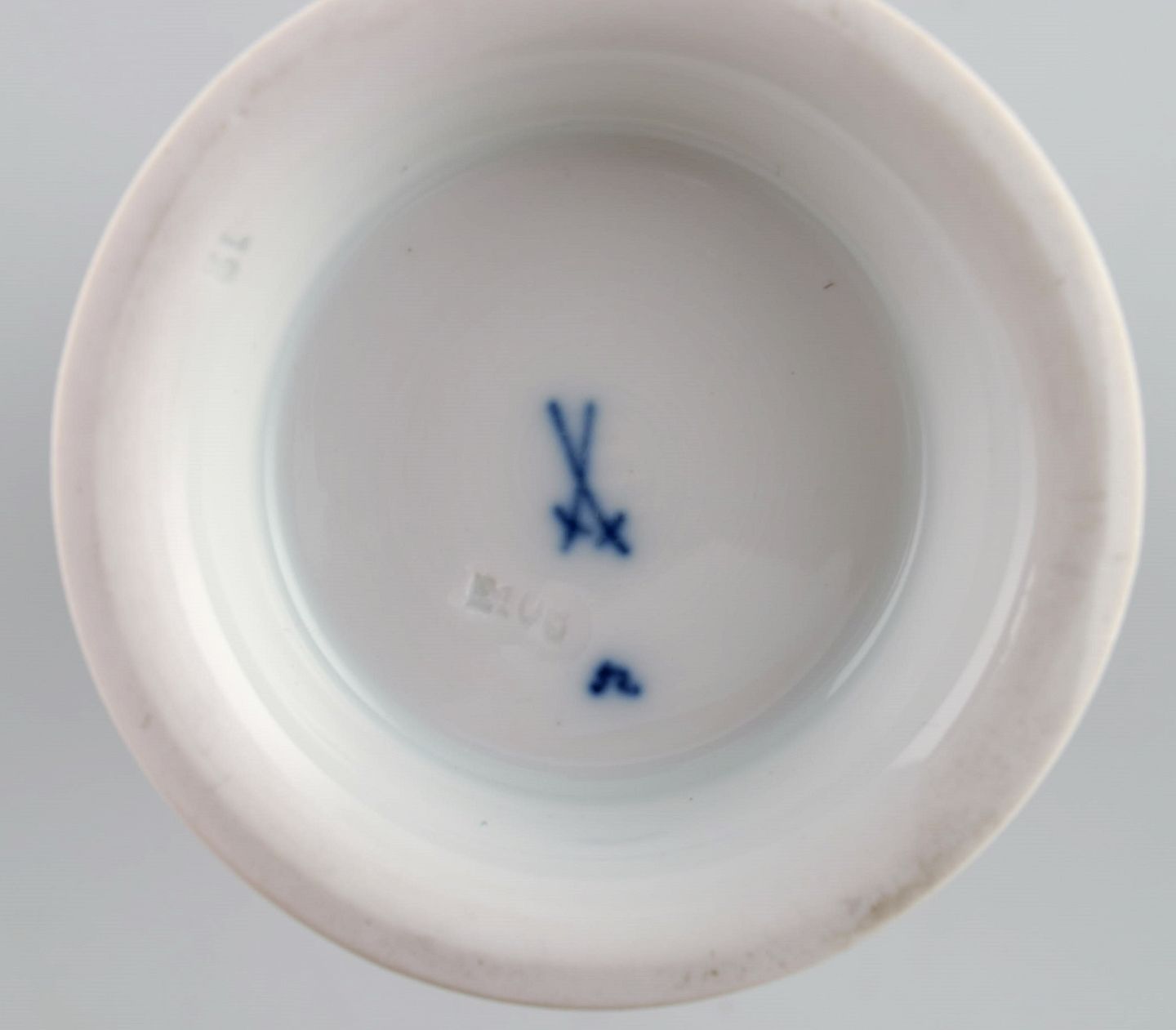 Meissen Green Ivy Vine vase and bowl in hand-painted porcelain. 1940's.The bowl measures: 19 x 3.5 cm.