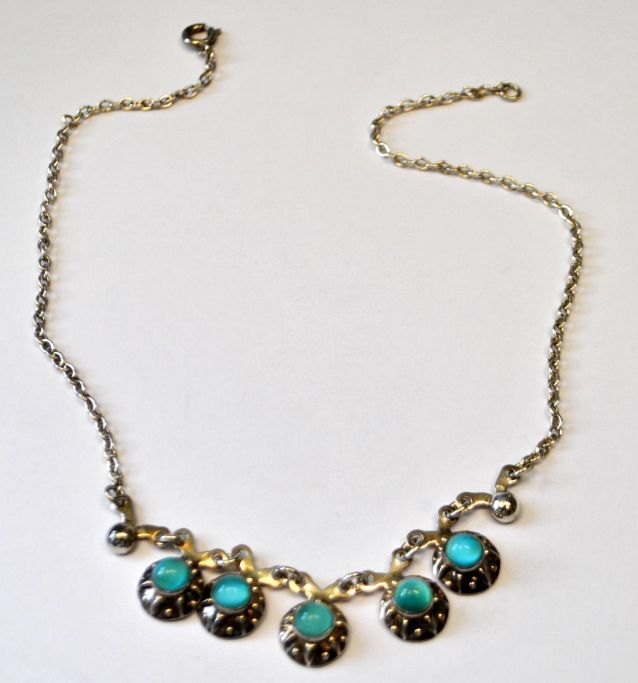 Herman Siersbøl (after 1949) Sterling necklace, Copenhagen, Denmark. With light blue stones. Stamped. L .: 35 cm.Item number: 24420