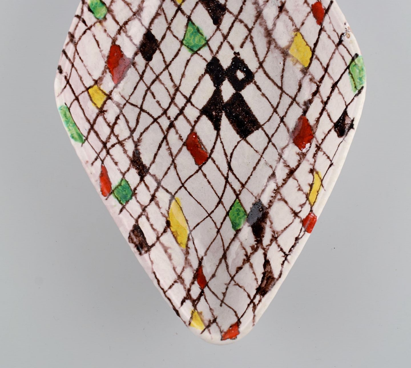 Aldo Londi for Bitossi. Mondrian dish in glazed stoneware with hand-painted checkered pattern. Italian design, 1960s.Measures: 26 x 15 x 5 cm.