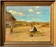 Magnussen, Fritz Julius August (1878 - 1920) Danmark: En mand hviler sig med en øl. Olie på lærred. 72 x 90 cm. Signeret Fritz Magnussen 1904.Indrammet. 92 x 119 cm.