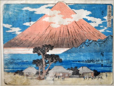 Hiroshige, Ando (1797 - 1858) Japan: Station Hara. Træsnit - koloreret. 16 x 20,5 cm. Fra serien Tokaido - vejen, ca. 1838. Indrammet: 31 x 35 cm. Emne nummer: 24510