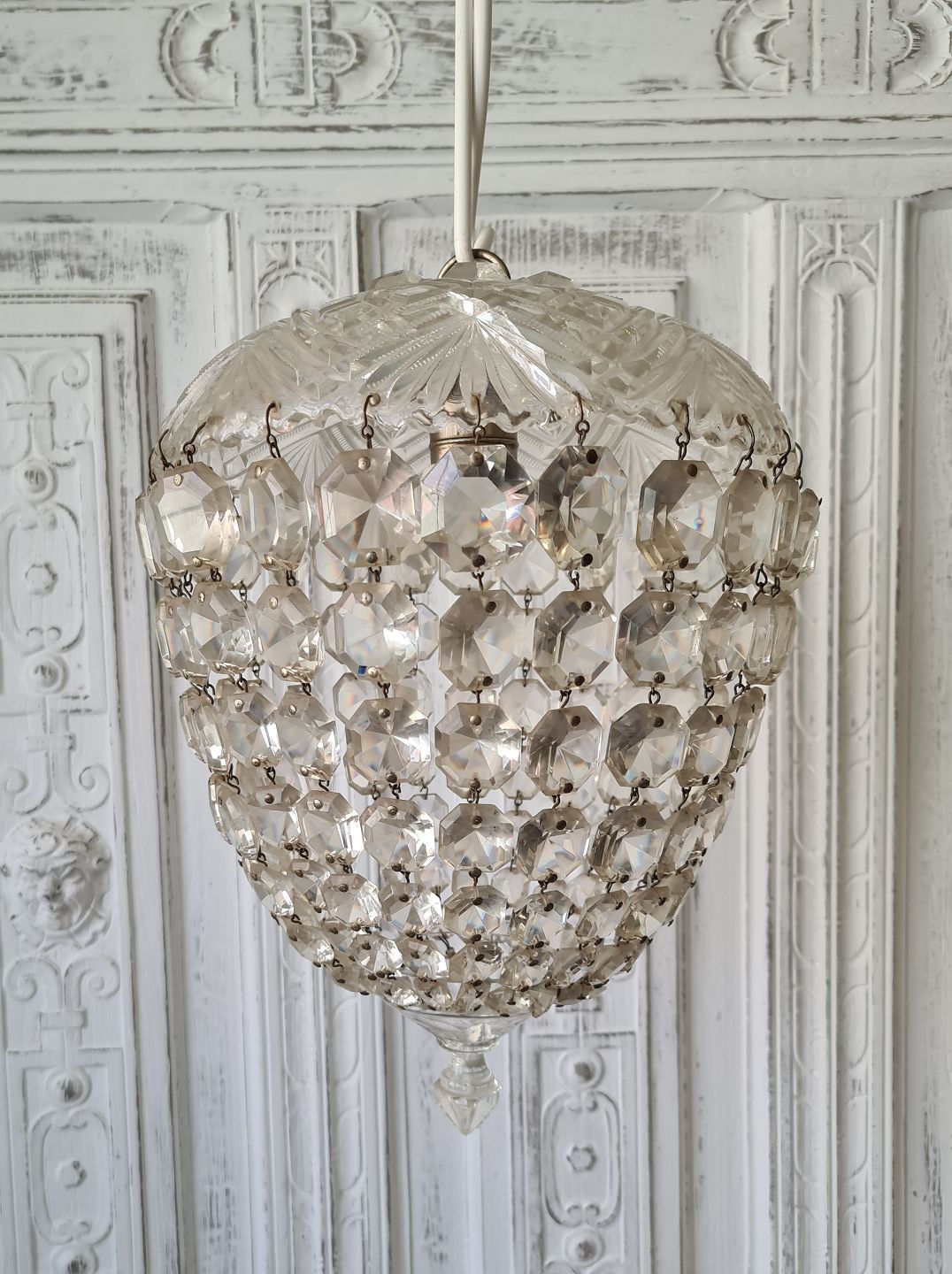 Beautiful sack-shaped crystal lamp.Diameter 23 cm. Height 32 cm.