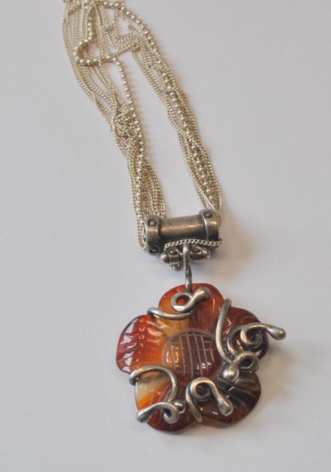 Sterling necklace with flower, 20th century. Stamped. Chain length: 40 cm. Dia. jewelry: 3.5 cm.Item number: 24667