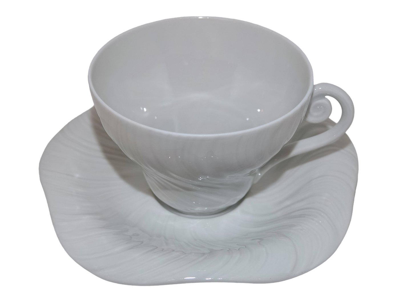 Royal Copenhagen Hvid Konkylie, stor kaffekop med tilhørende underkop.Designet af Arje Griegst i 1975.