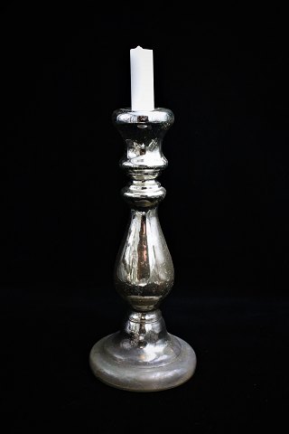 Stor 1800 tals lysestage i fattigmandssølv / Mercury Glass med fin gammel patina. Højde: 29cm.Emne nummer: Fattigmandssølv stage nr.36