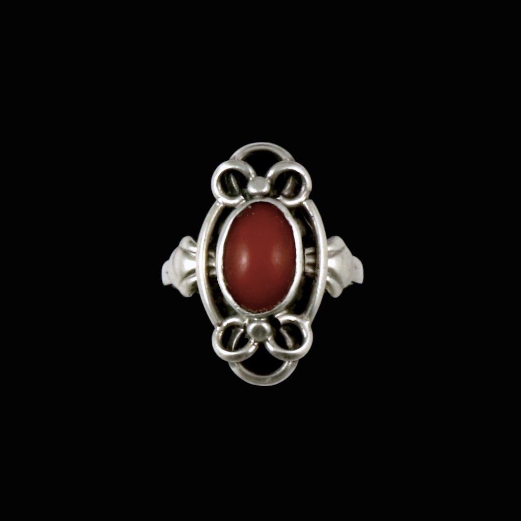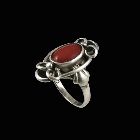 Chr. Veilskov - Copenhagen. Art Nouveau Silver Ring with Coral.Designed and crafted by Chr. Veilskov - Copenhagen 1963 - 1986.