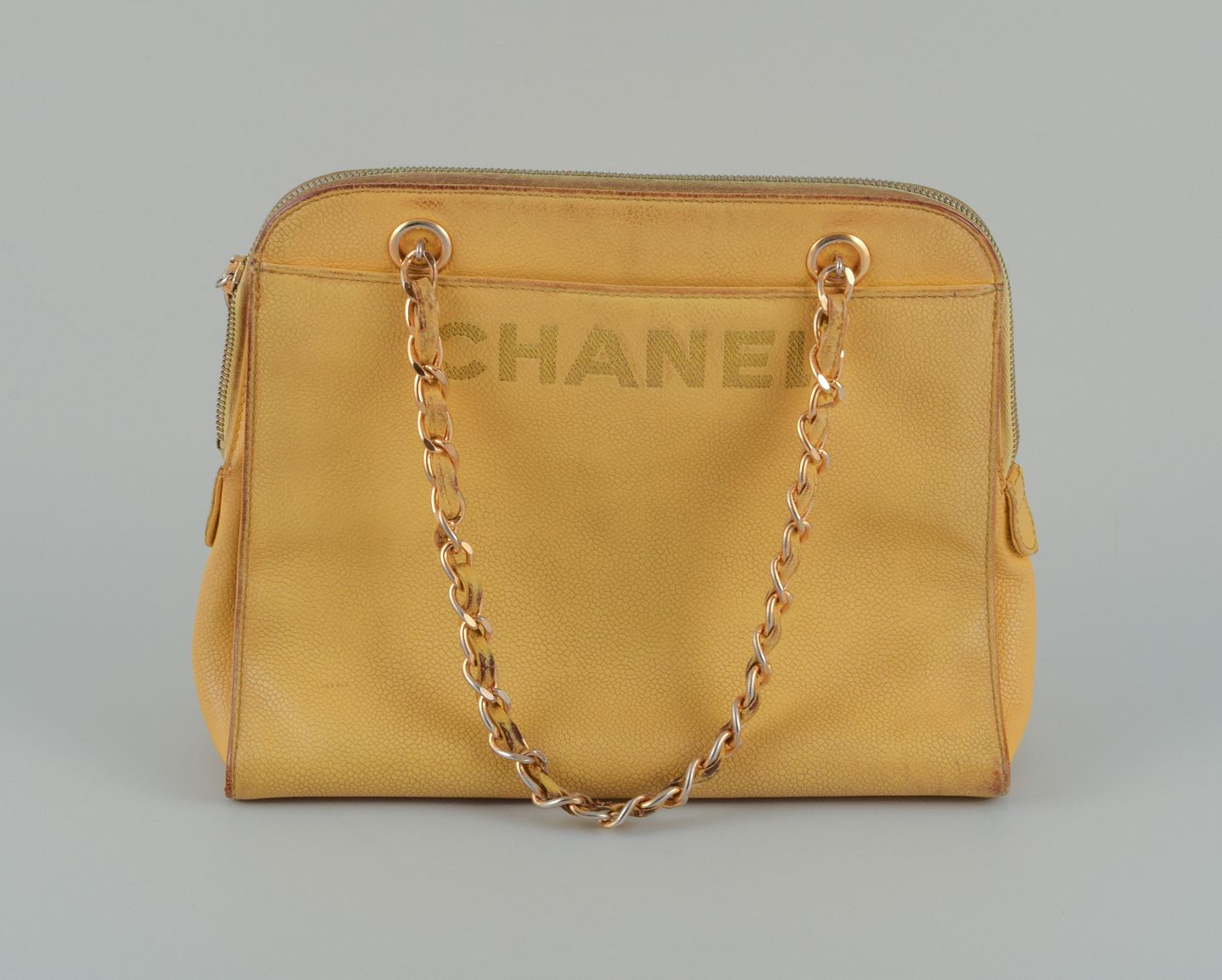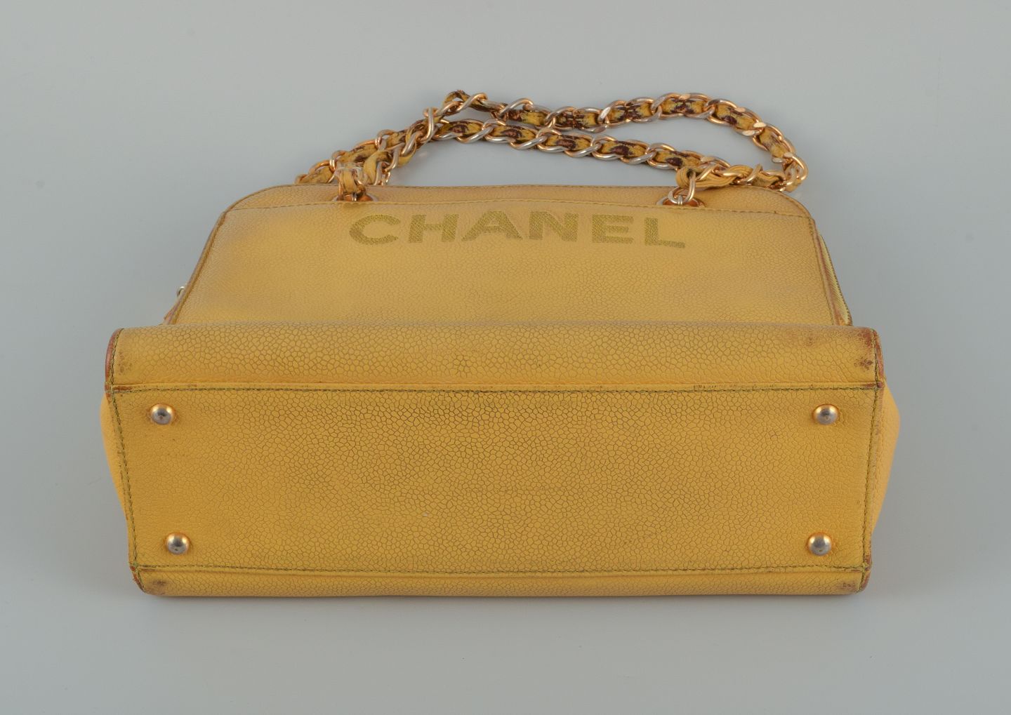 Chanel calfskin bag in yellow Italian calfskin.1970/80s.