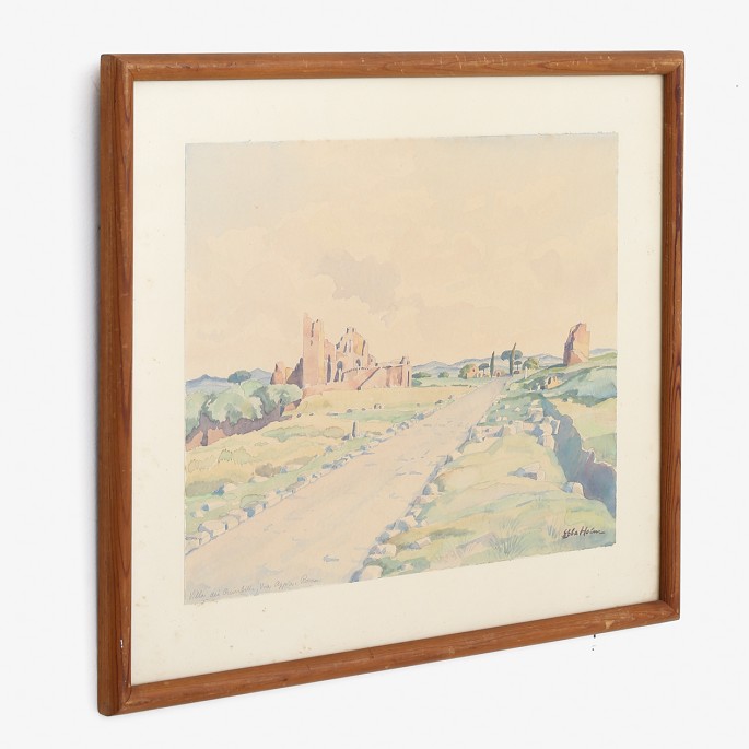 Watercolour in original wooden frame. Motif from Villa dei Quintili via Appia, Roma in Italy. 1946.