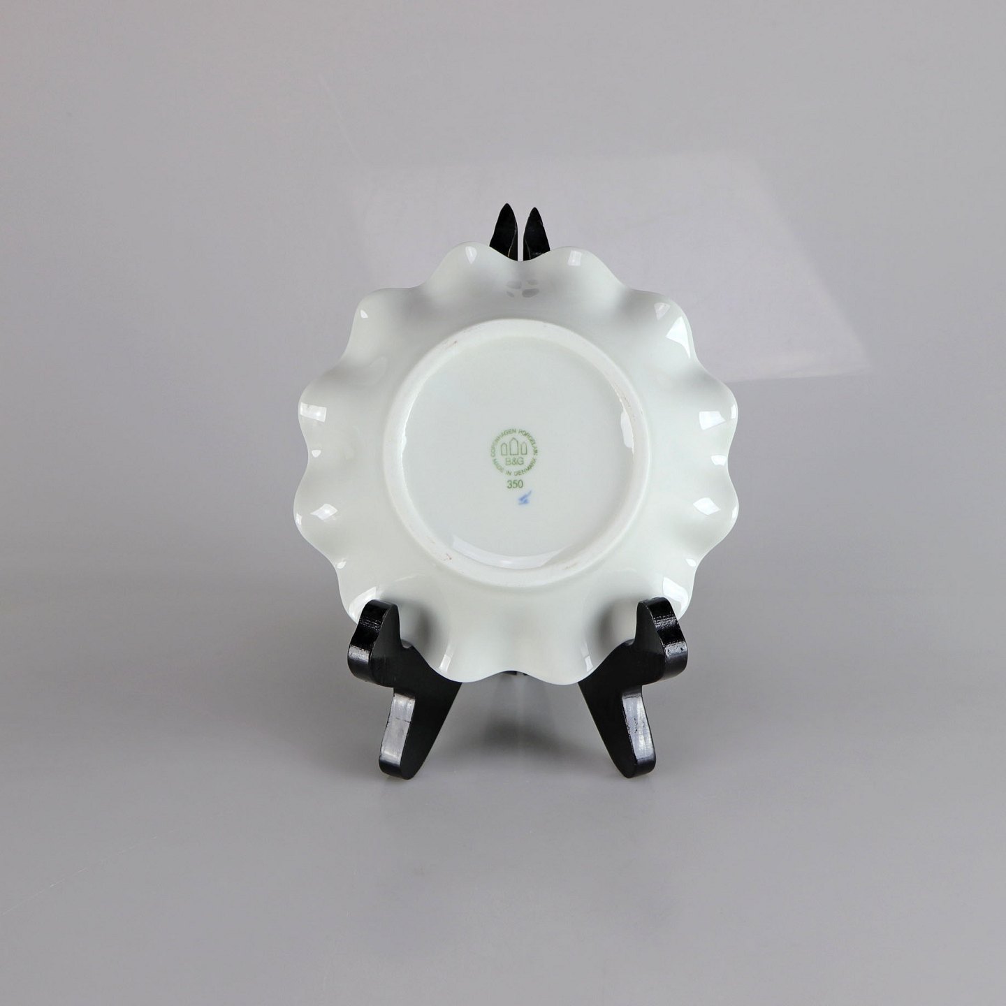 Kuvert asiet i hvidt porcelæn med skelform og motiv af guirlander med blå blomster