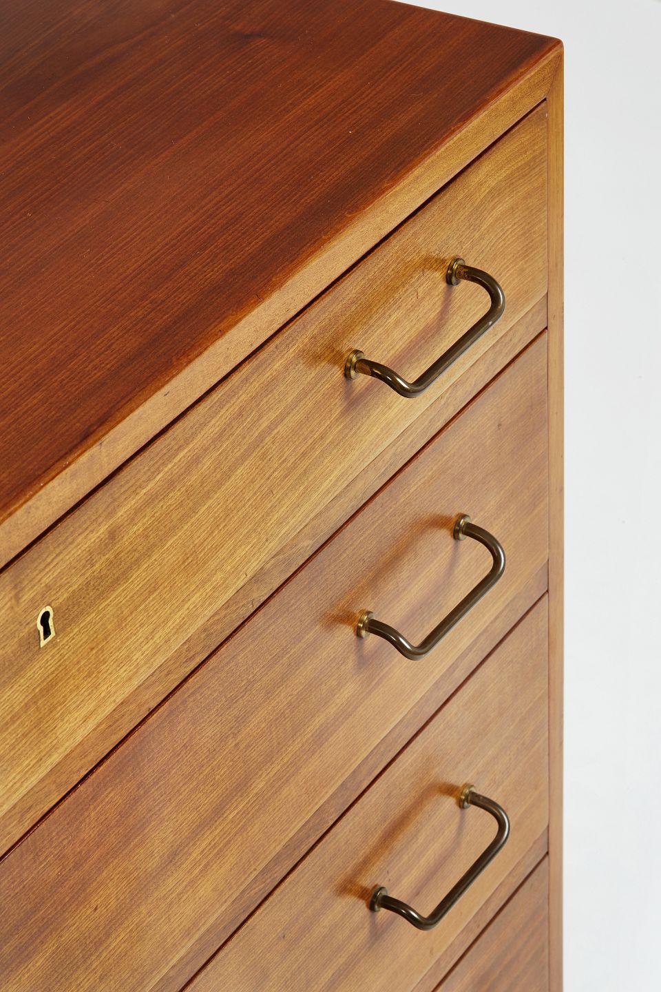 Danish Cabinetmaker mahogany chest of drawers with four drawers made inside in solid oak. Front with handles on the brass drawers.Very nice original condition from the 1930ties.
