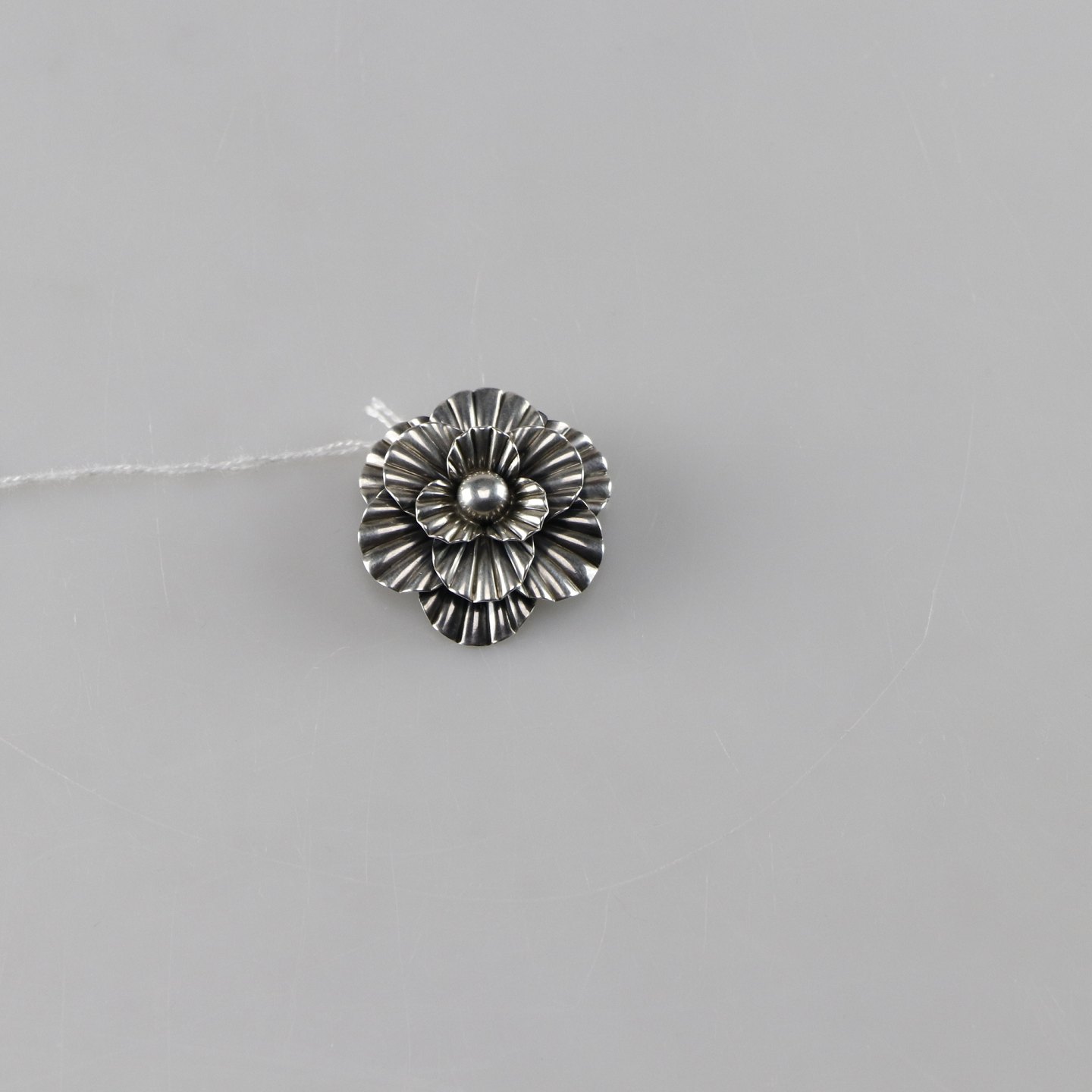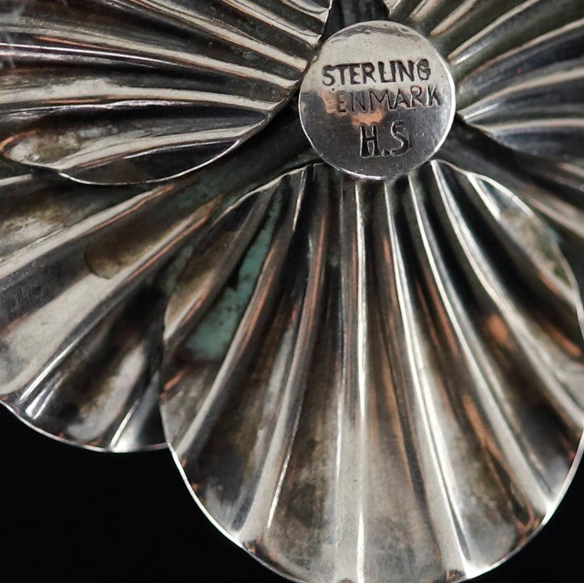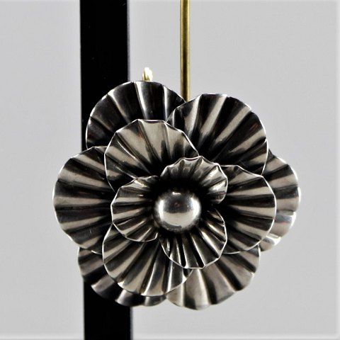 Rund broche i sterling sølv med blomstermotivDesign Herman Siersbøl