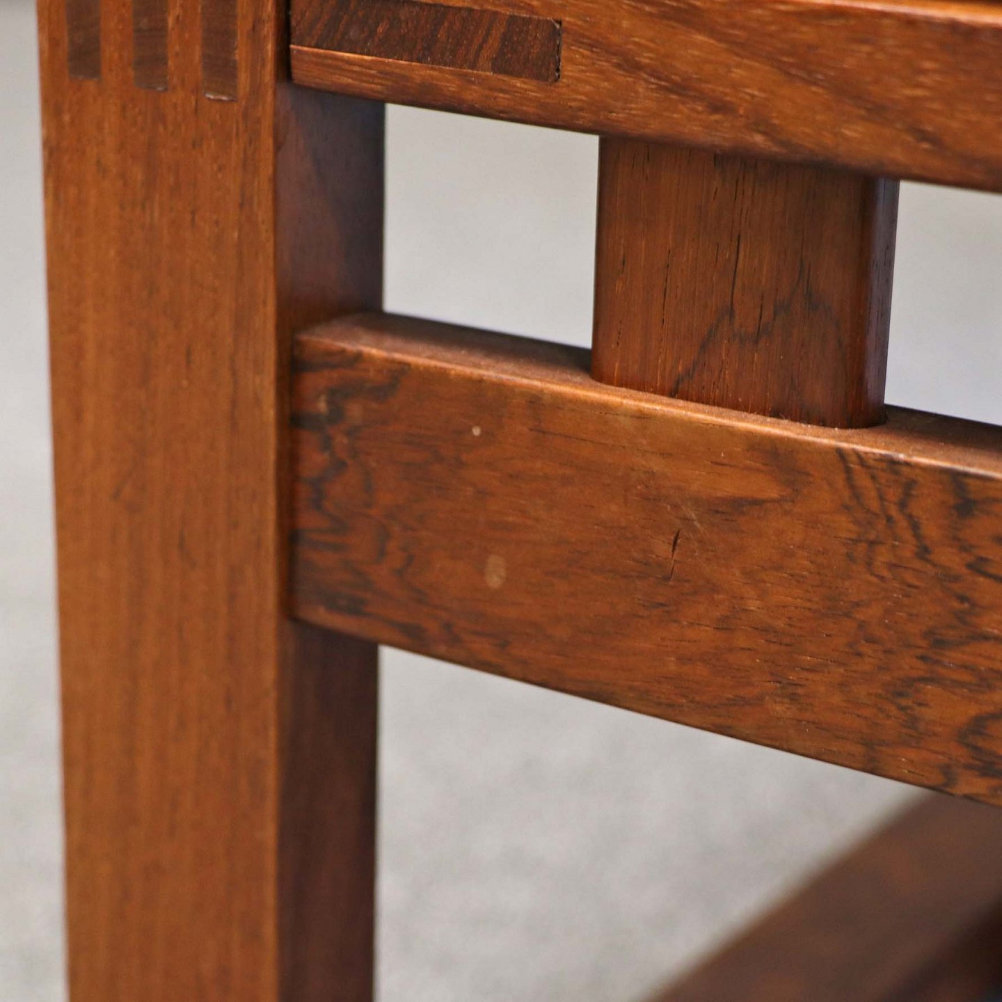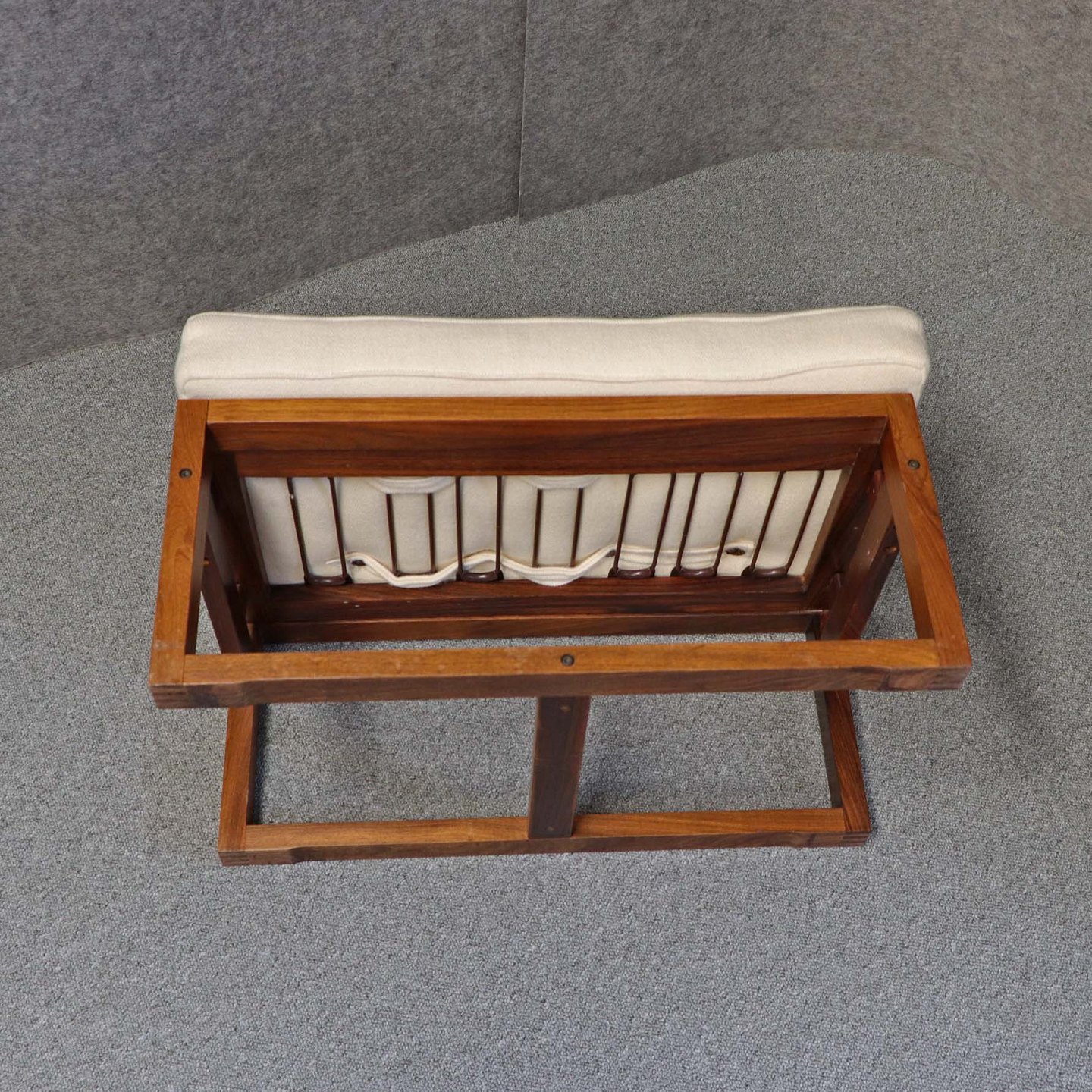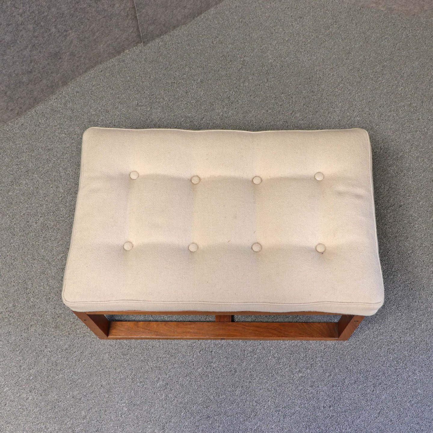 Skammel stel i teak med polstret hynde med rådhvid uldbetrækDansk design