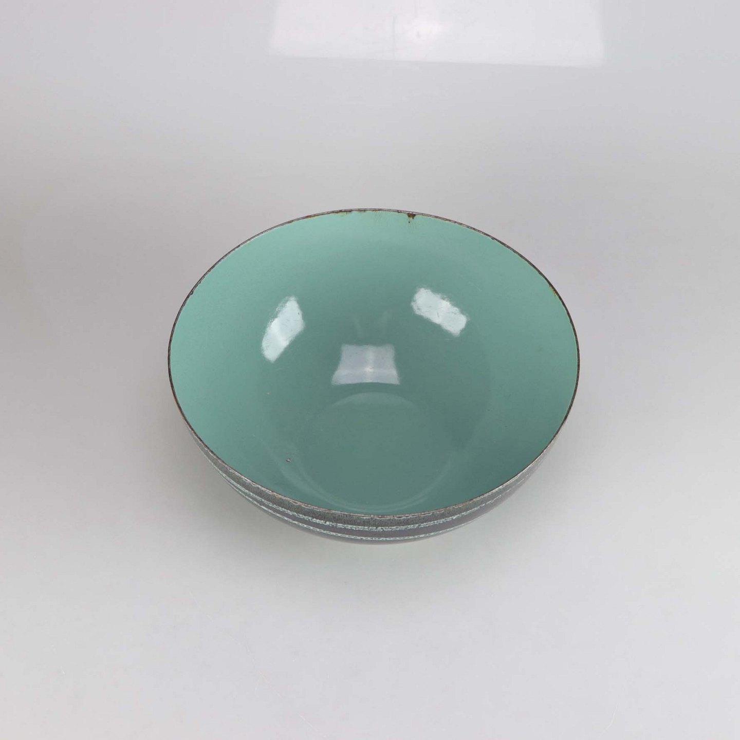 Original Cathrineholm emaljeret skål fra serien Saturn i sort og søgrønFormgiver Grete Prytz Kettelsen