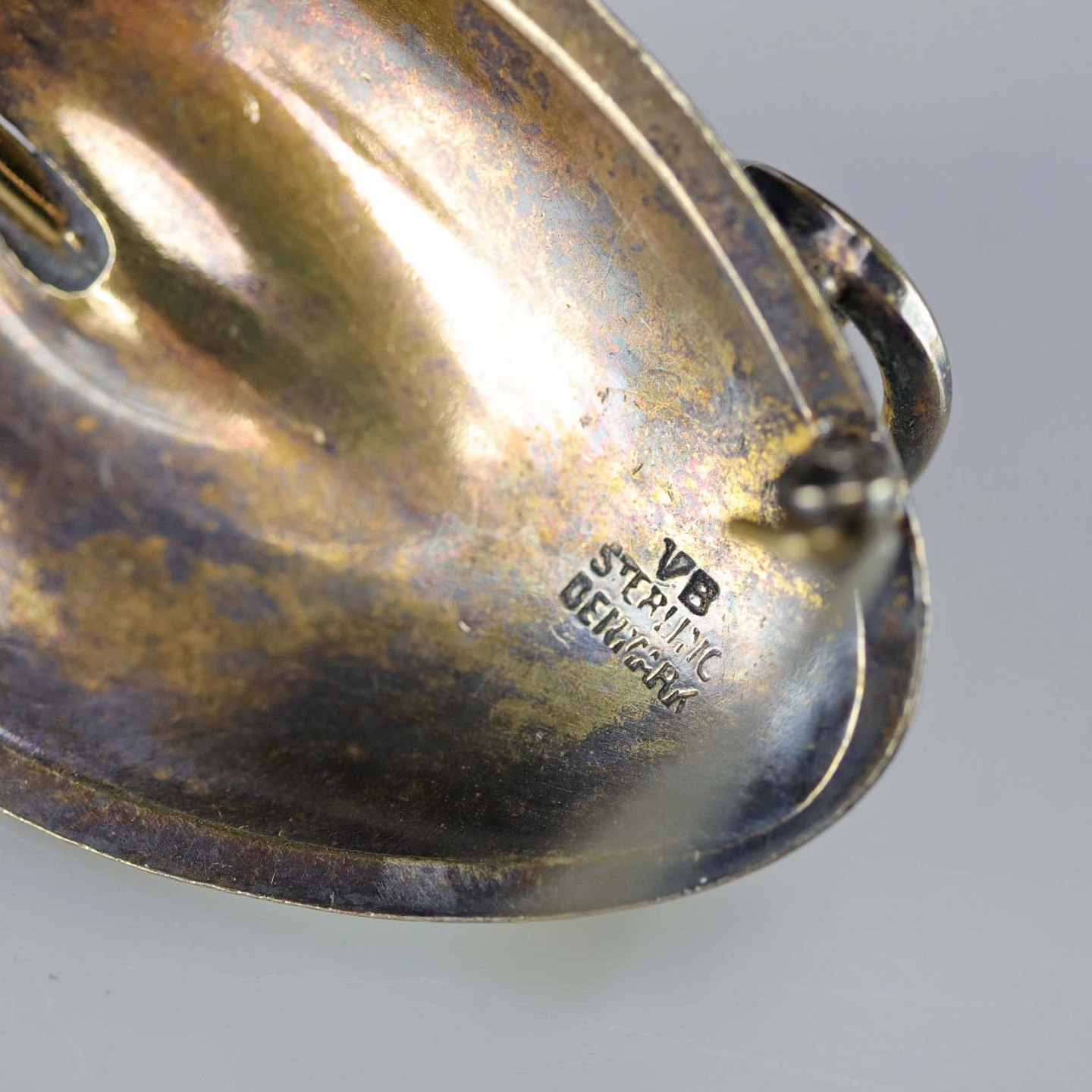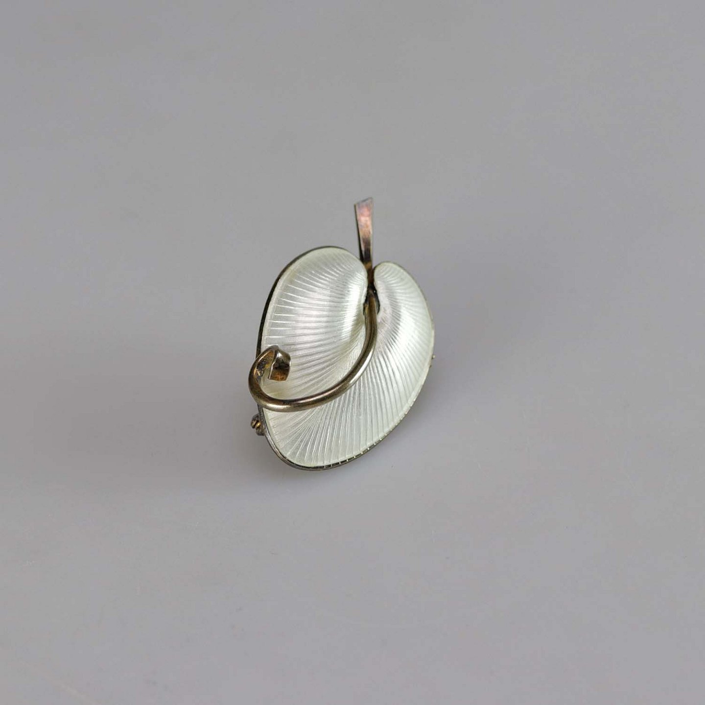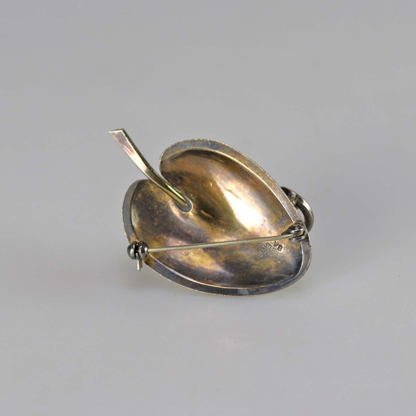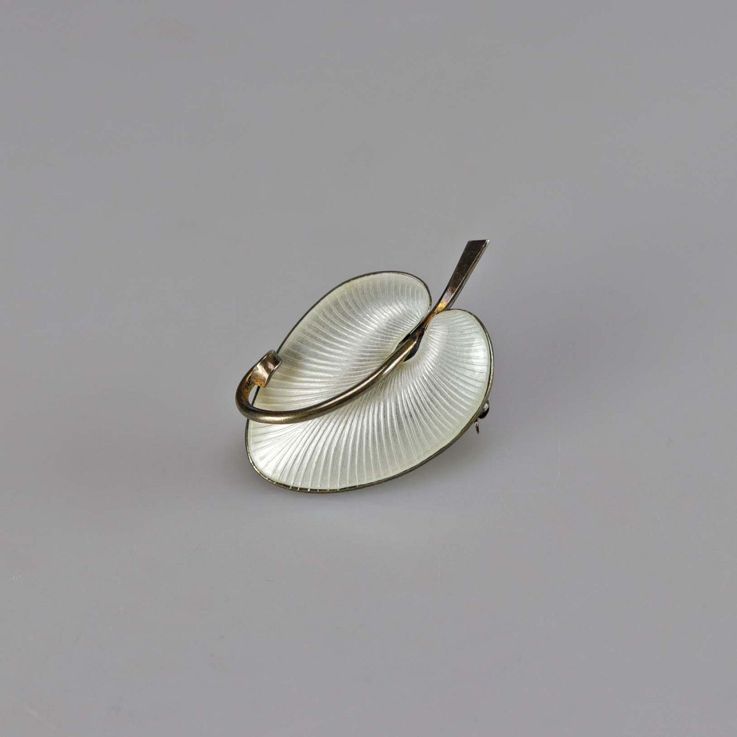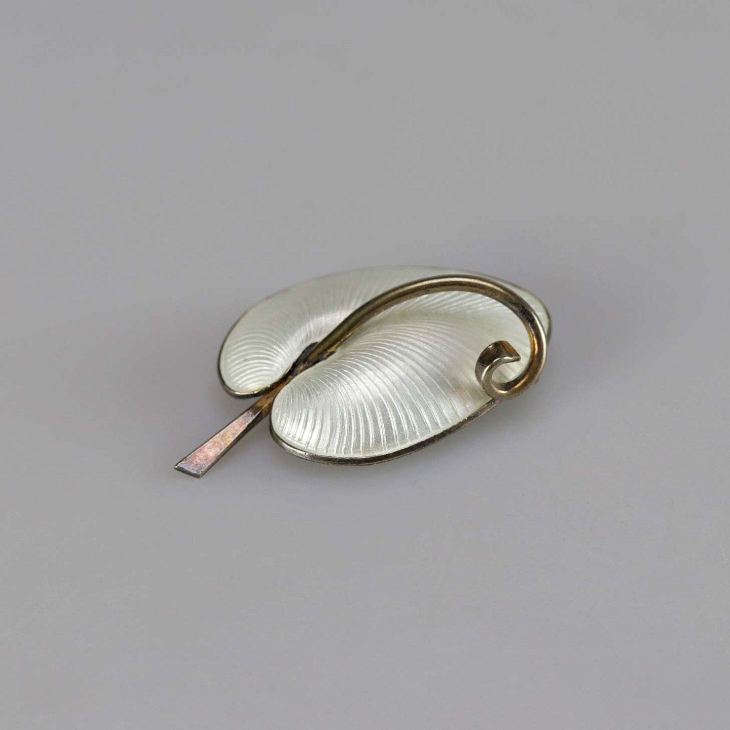 Broche i forgyldt sølv med hvid emajle formet som Calla liljeDesign Volmer Bahner