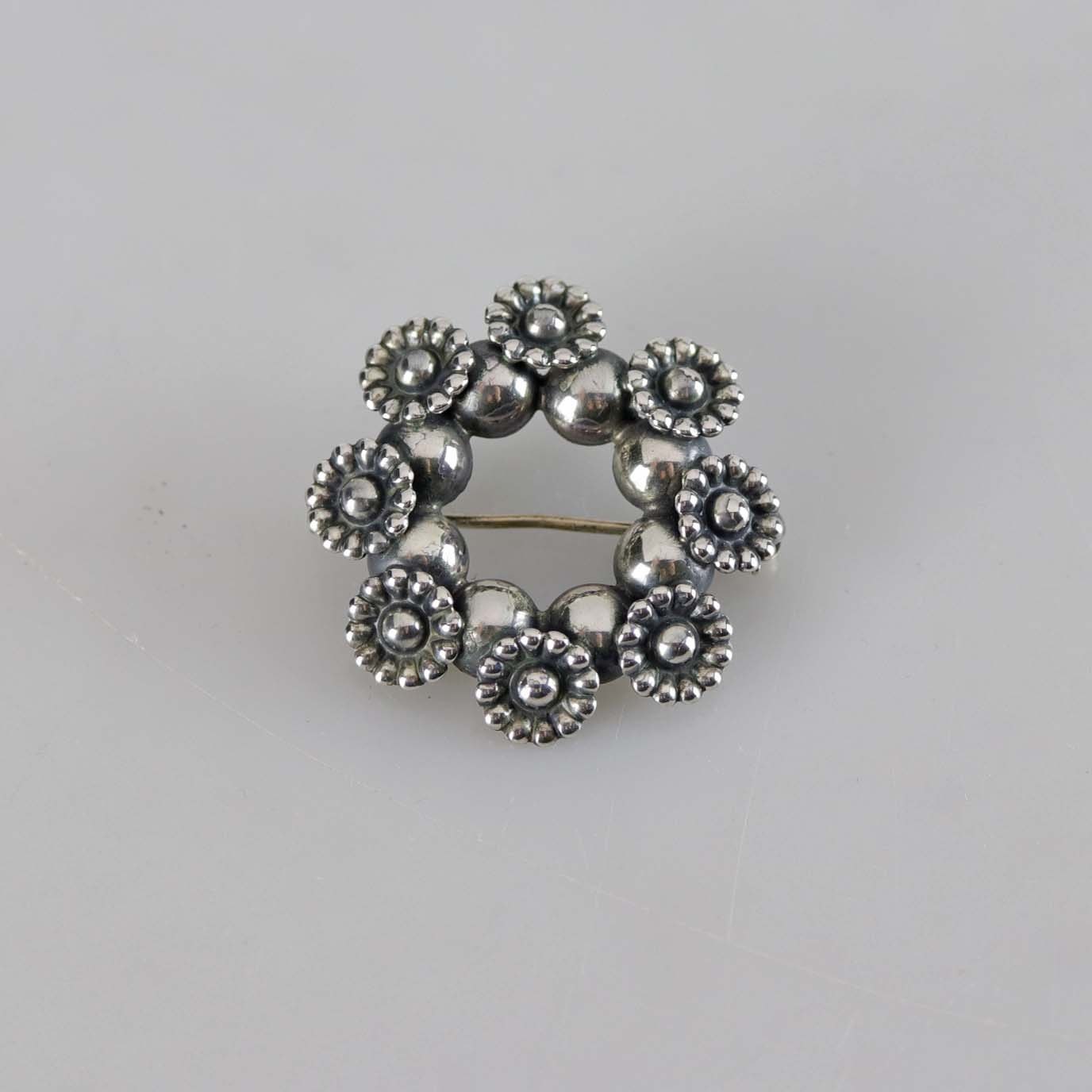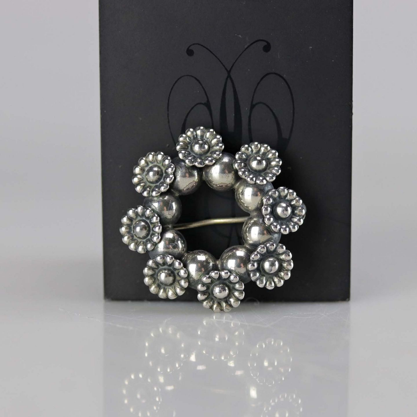 Broche i sterling sølv med motiv af krans med blomsterDesign Herman Siersbøl