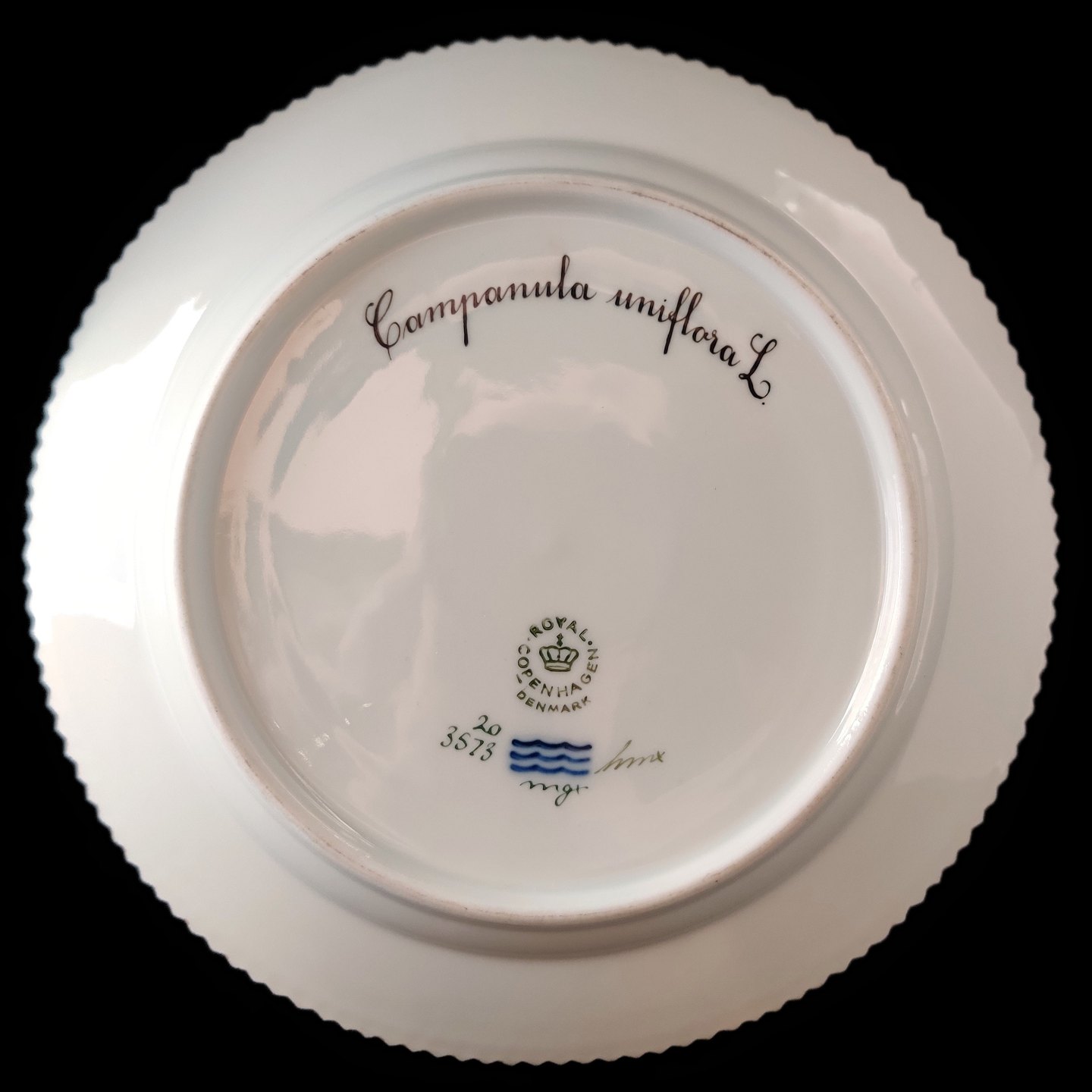 Royal Copenhagen, Flora Danica porcelain; Plate #3573. Decoration: Campanula uniflora L.Decorated in colours and gold with flowers. Diam 19,5 cm.