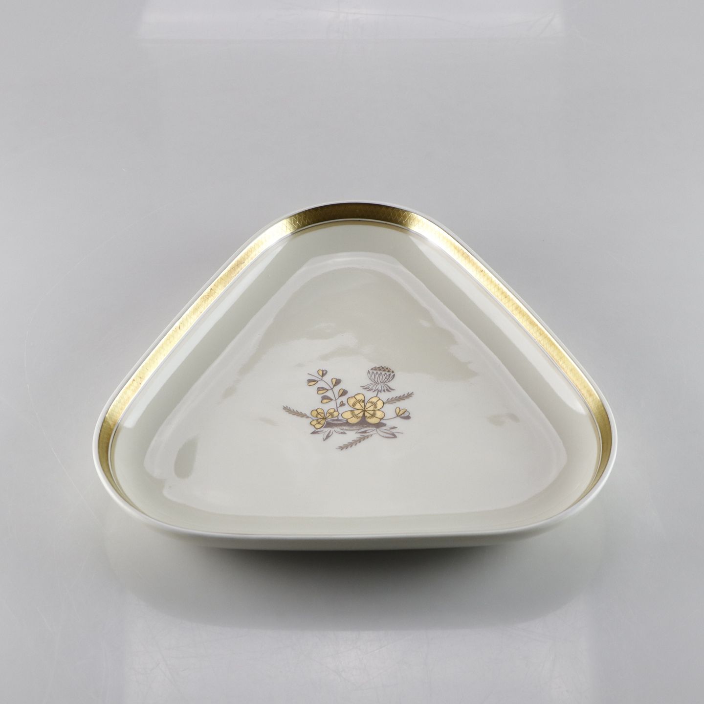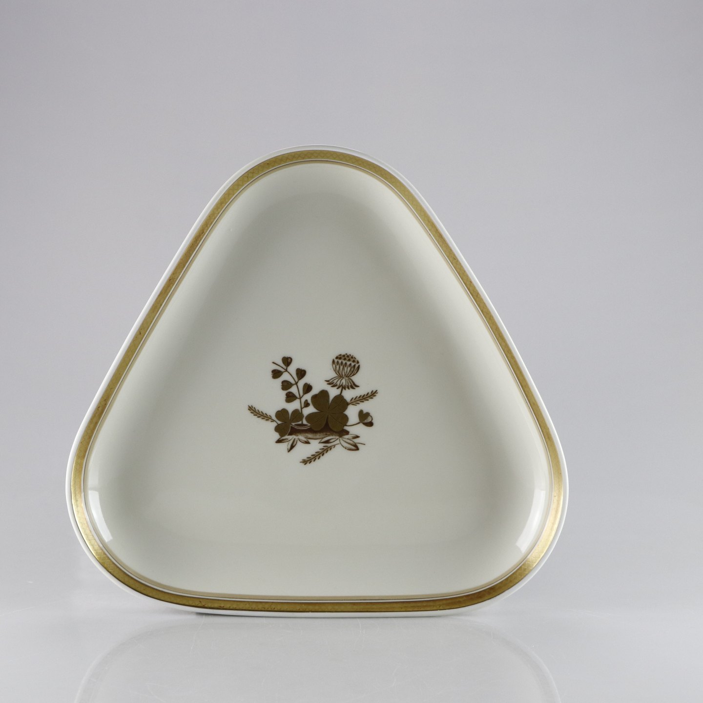 Kongeligt fad no 947/9721 af stellet Liselund gylden kløver. Design af Thorkild Olsen