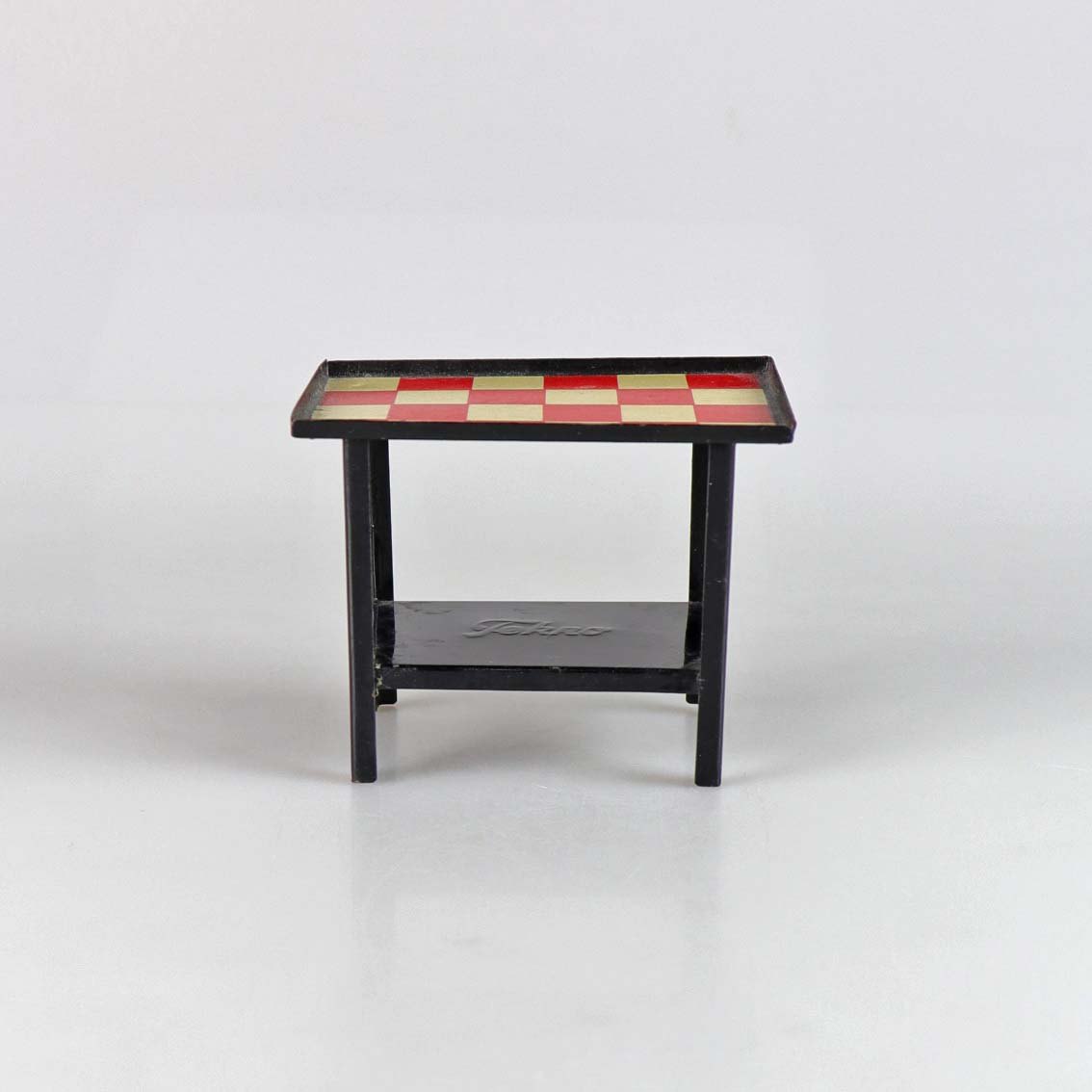 Tekno gasbord i metal med røde og hvide tern i toppen