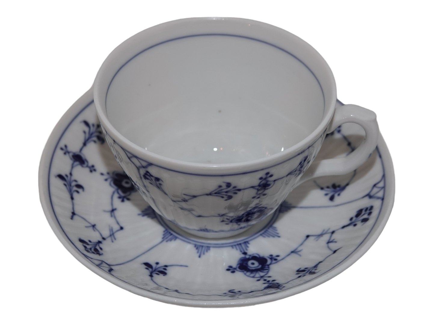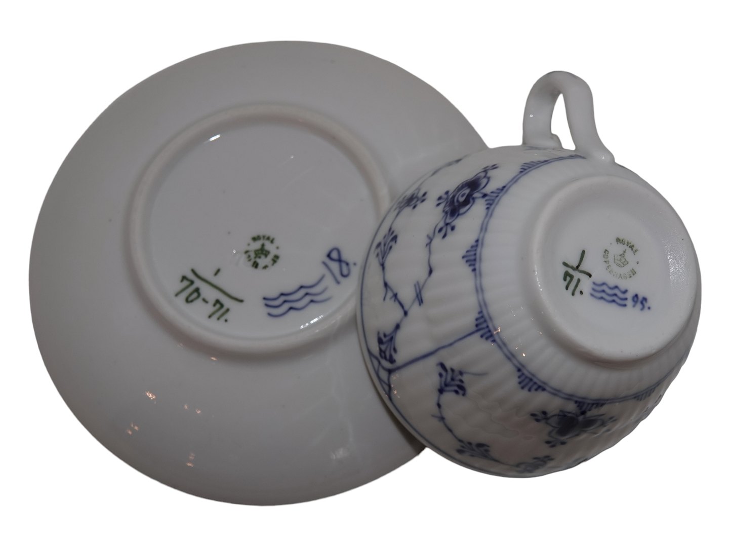 Royal Copenhagen Blue Fluted Plain, coffee cup with matching saucer.Decoration number 1/71.