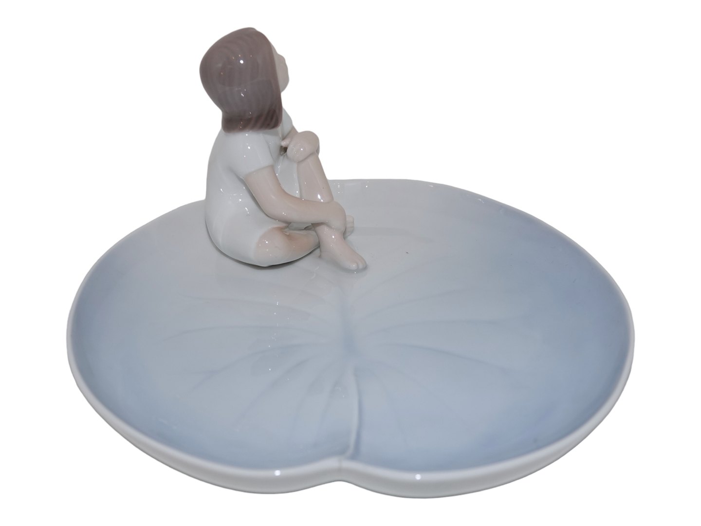 Bing & Grøndahl figur, Tommelise på fad / åkande.Fabriksmærket viser, at denne er fra mellem 1962 og 1970.