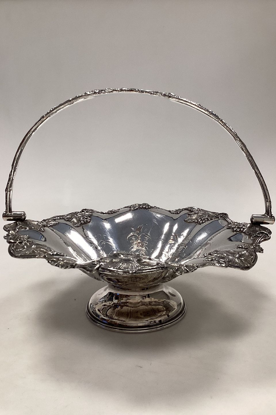 Flot Europæisk Sølvplet kurv med hank med blomster motivMåler 29cm x 22,5cm ( 11.42 inch x 8.86 inch )