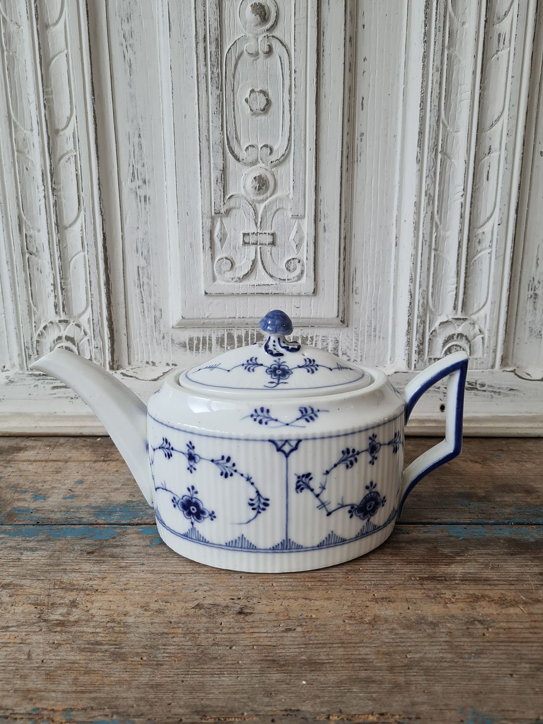Royal Copenhagen Musselmalet riflet oval tekandeNo. 255, 2. sortering - kanden vipper lidt