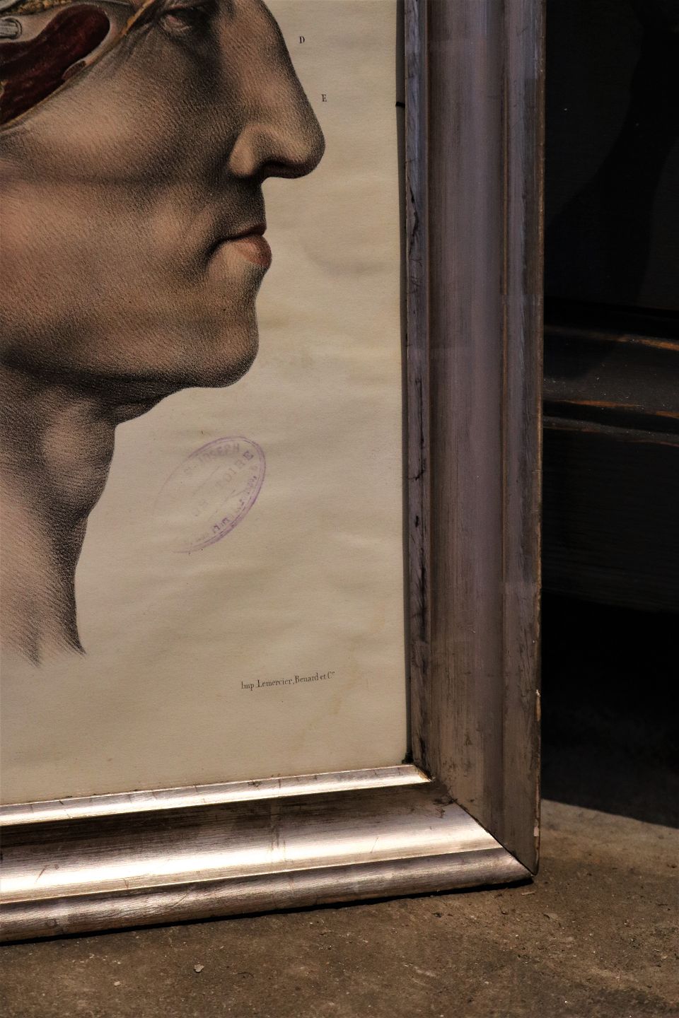 19th century engraving of the anatomy of the human body (head) framed in a 19th century silver frame with a fine patina. Measures: 48x36cm.Item number: Anatomi 2
