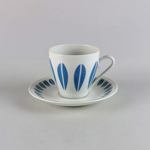 Kaffekop med underkop fra stellet Lotus med blåt motiv no 114Producent Porcelænsfabrikken Danmark