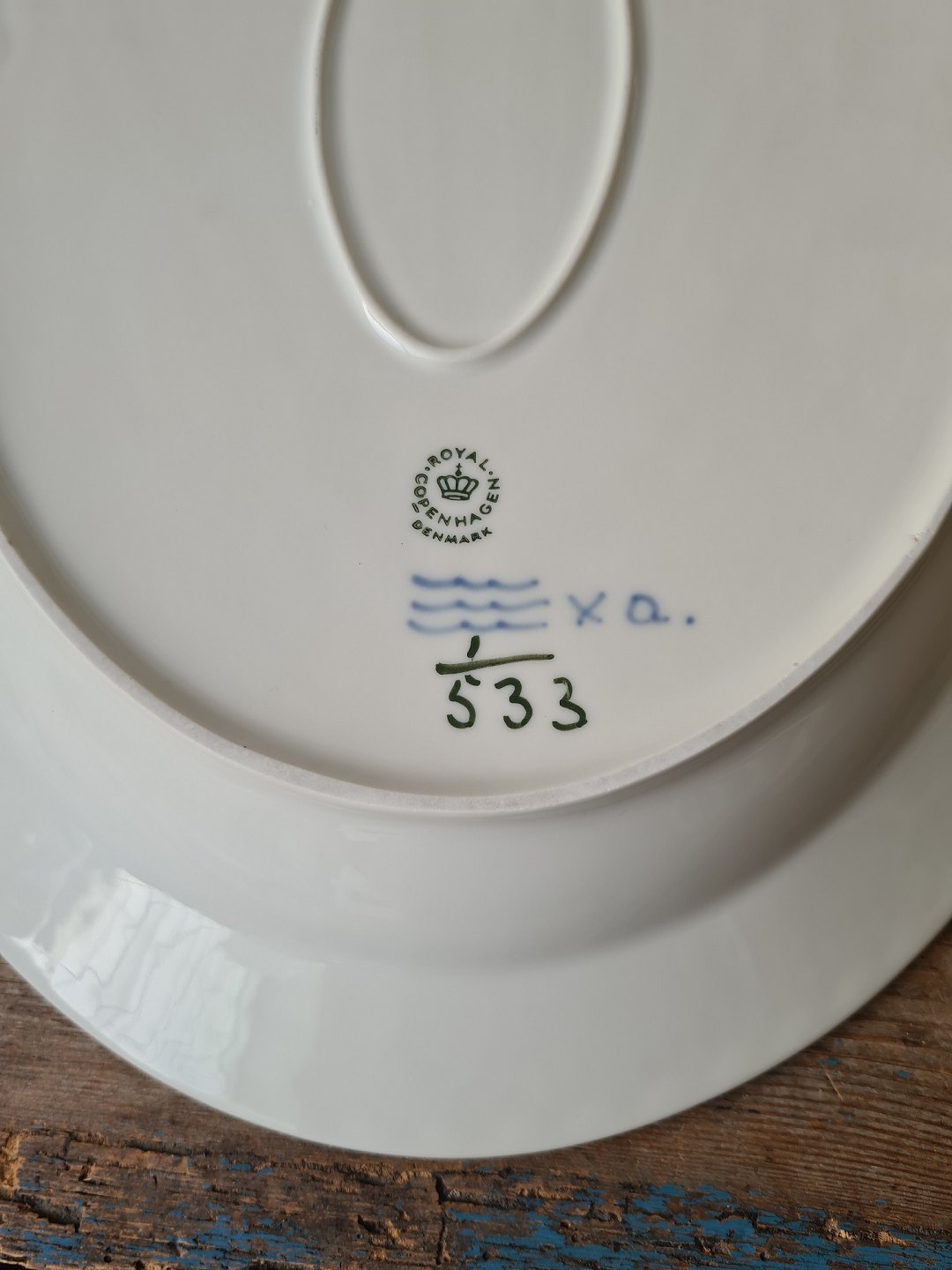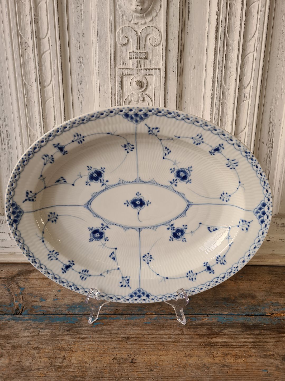 Royal Copenhagen Blue fluted half lace dishNo. 533, Factory first