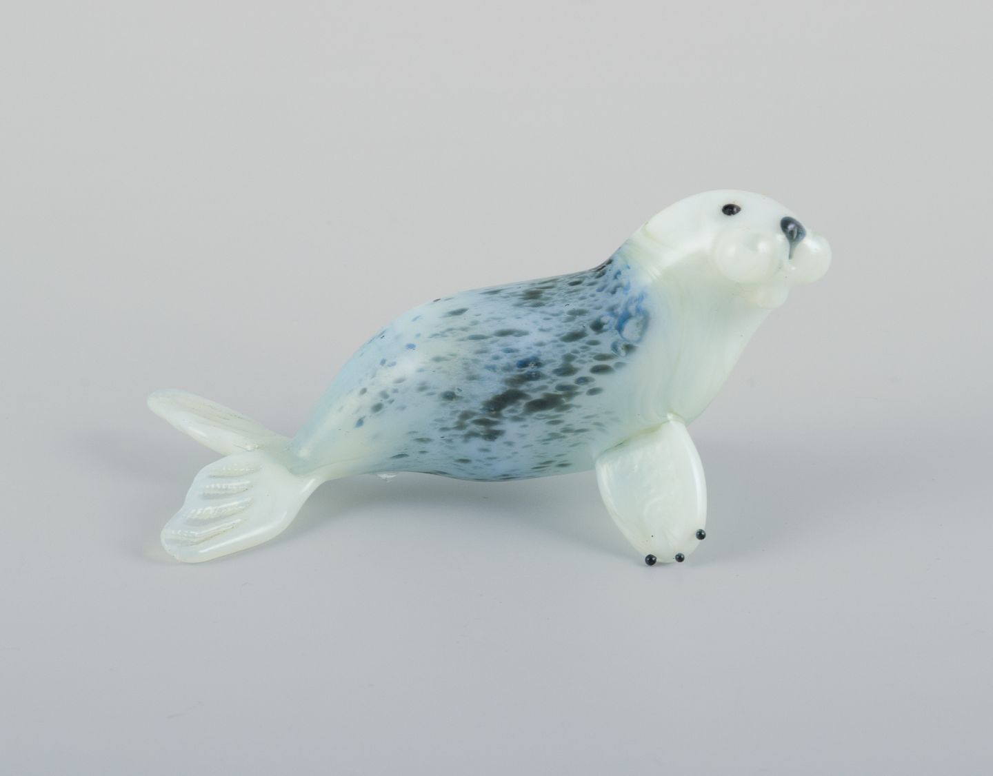 Murano, Italy. A collection of three miniature glass figurines consisting of two seals and a crab in colored art glass.1960s/1970s.