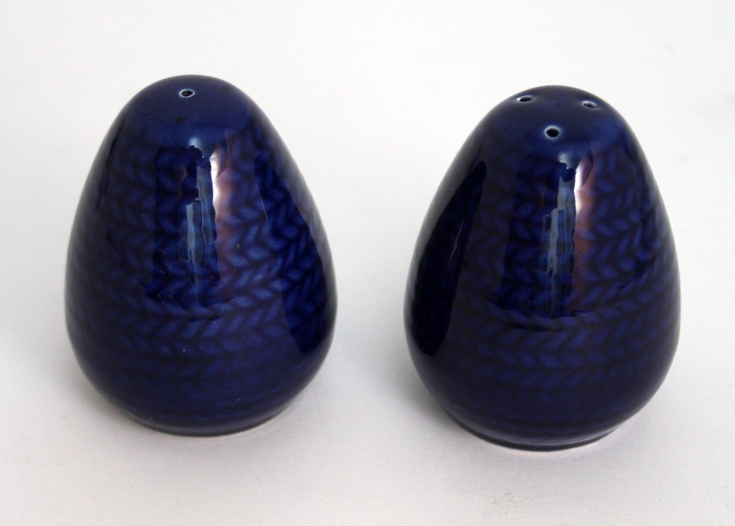 Rørstrand, Blå Eld. Designet af Hertha Bengtson i 1951. Leveres med både nye gummipropper og gamle korkpropper.Salt. Højde 6 cm. Pris: 200 kr. stk. Lager: 1
