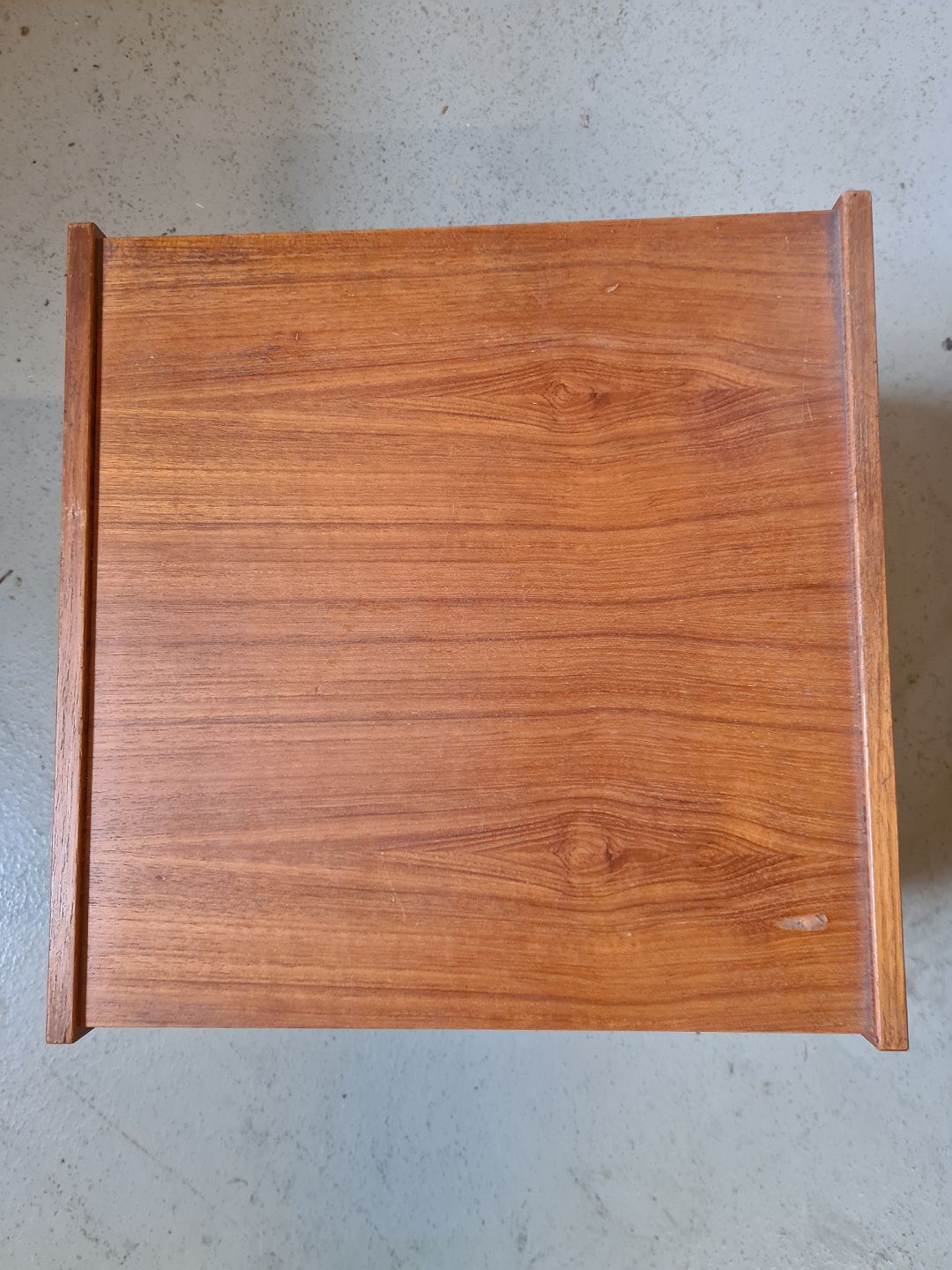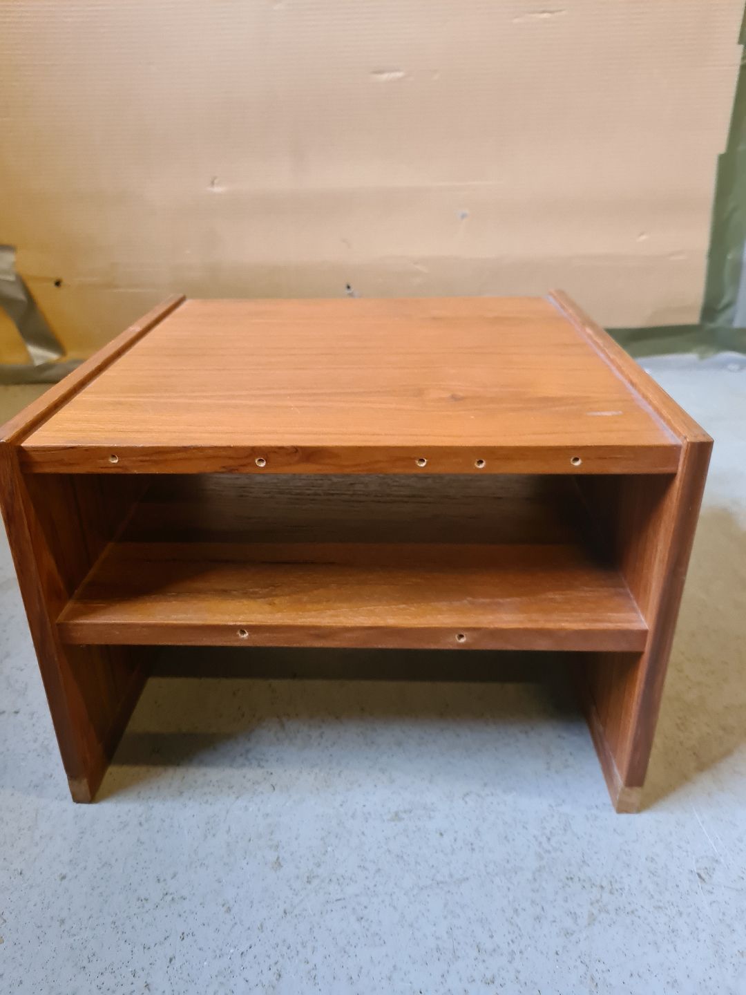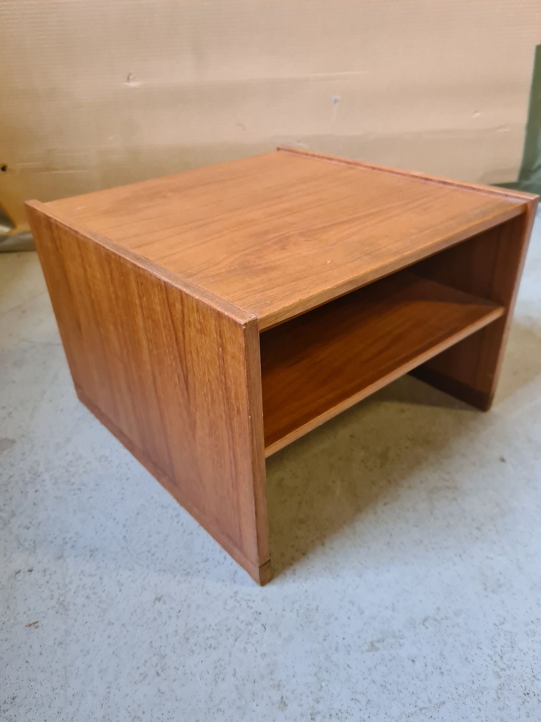 Mini møbel med hylde i fineret teaktræ, fra 1960erne.Det har brugsspor.