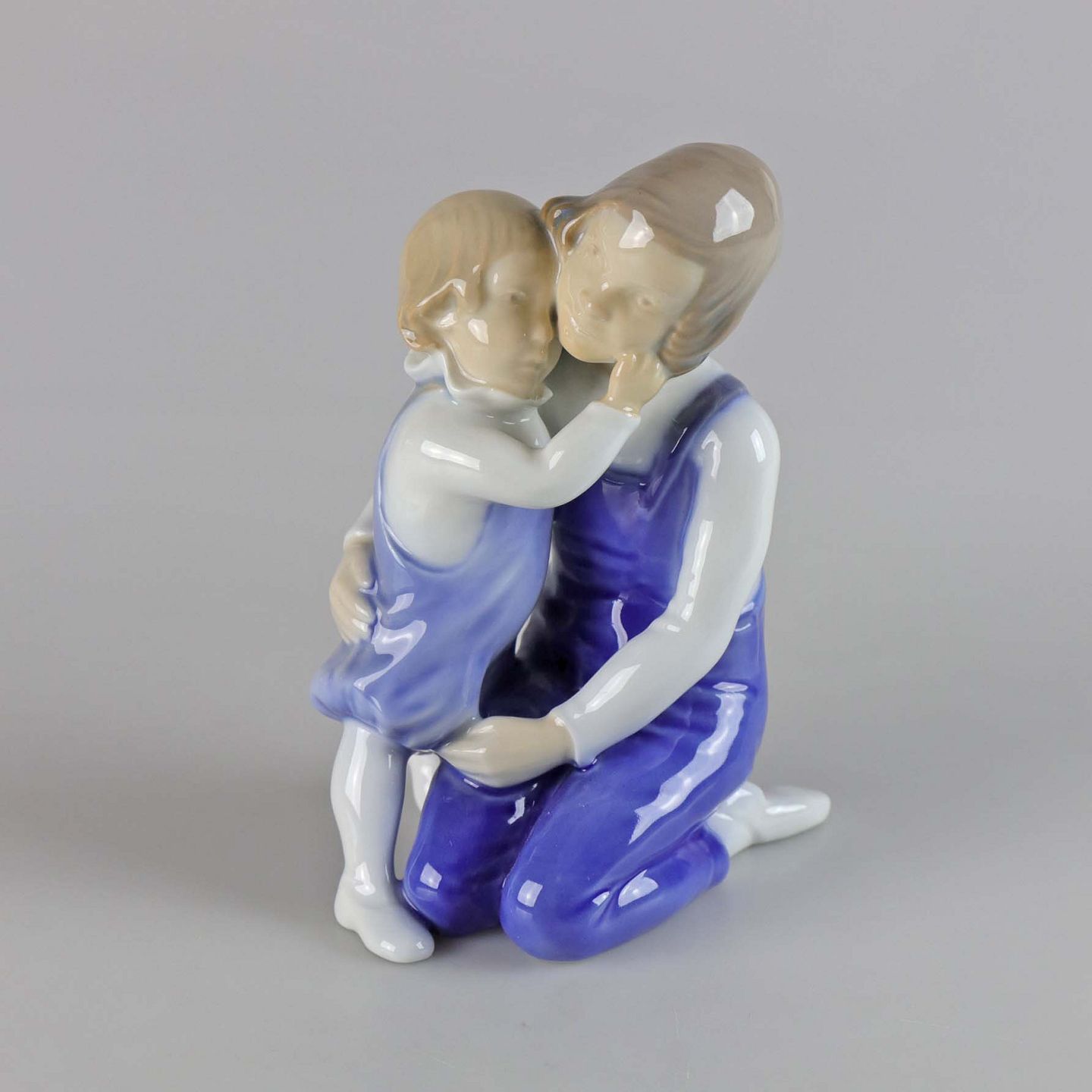 Figur i porcelæn af en ung pige og et barn som krammer. No 2250Producent Bing & Grøndahl