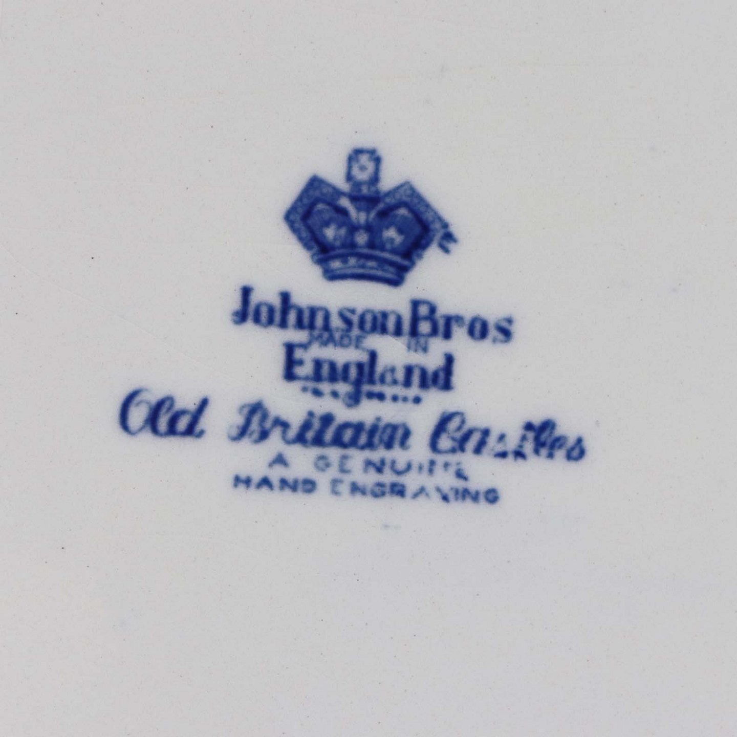 Fad af engelsk fajance fra stellet Old Britain Castles i blåProduceret af Johnson Bros., England