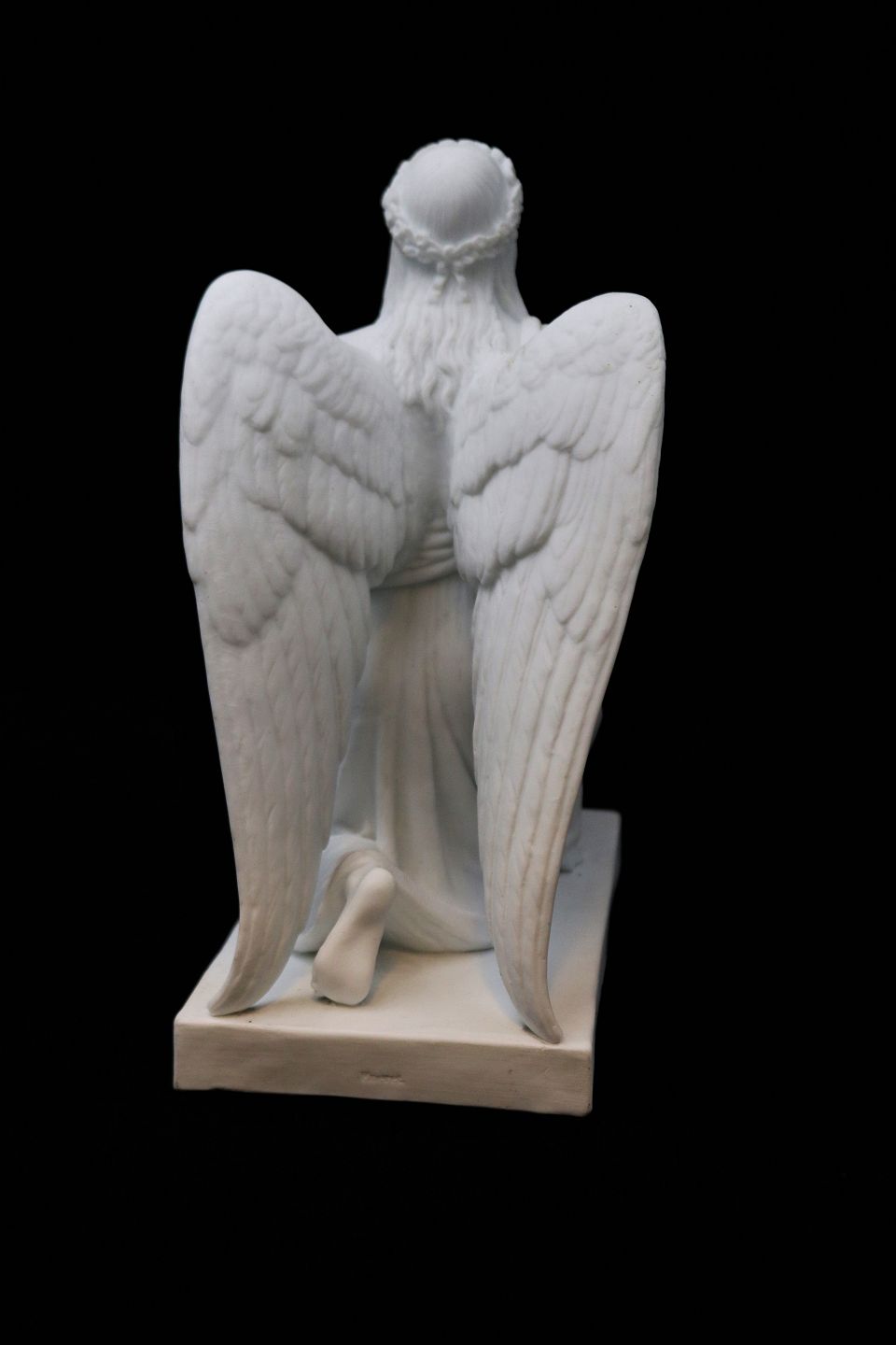 Antique Thorvaldsen angel figure in biscuit of the angel of the baptism from Bing & Grondahl. Stamped. Measures: H: 22cm.The figure has a small chip under the clam shell and 2 small burn marks, see extra pictures.