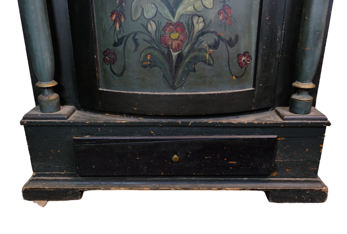 Painted Hedebo cabinet (Roskilde cabinet) with columns and floral decoration with door and interior shelves from the year 1836.Measurements in cm: H:183 W:95 D:55