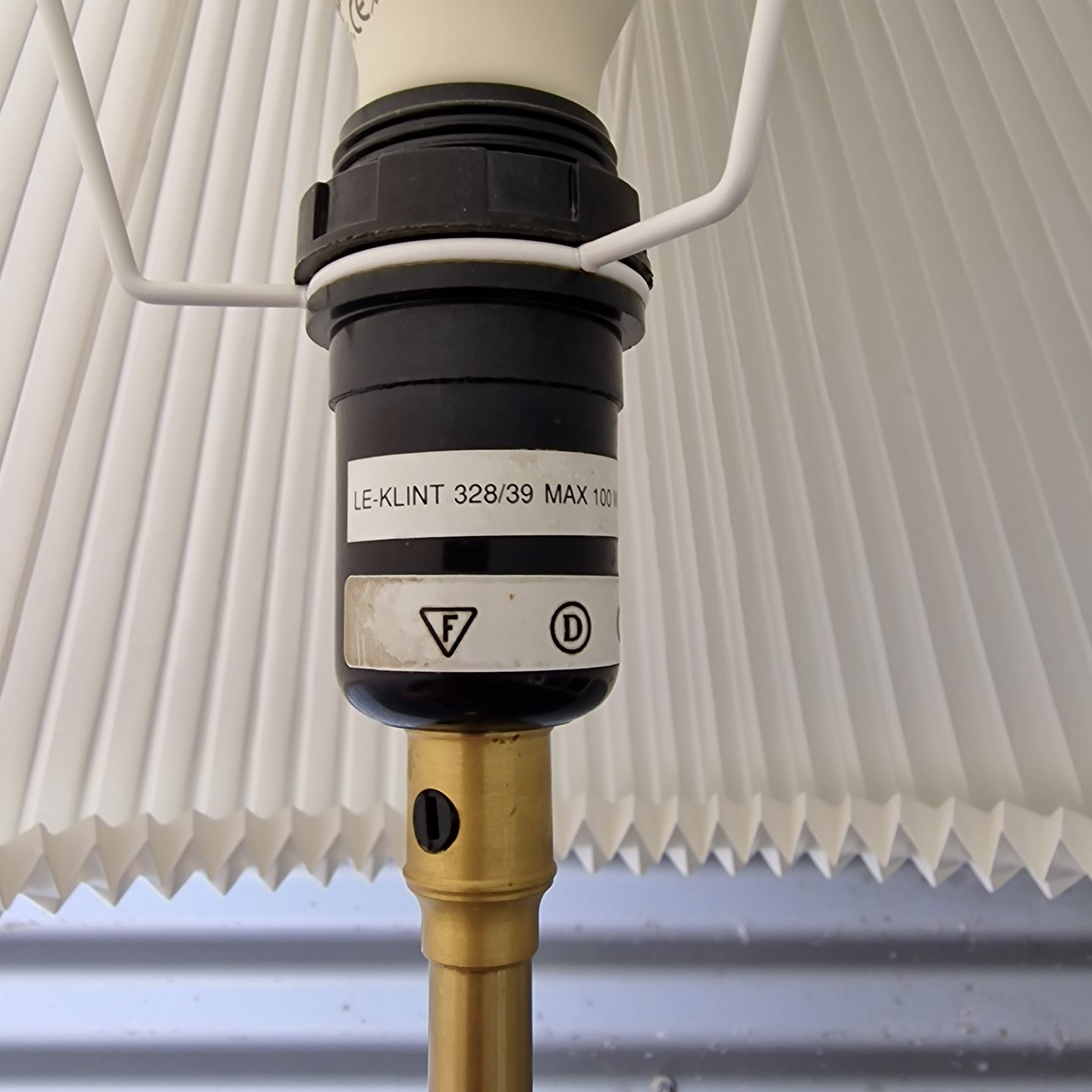 Le Klint standerlampe model 329/39Guld med hvid skærm.