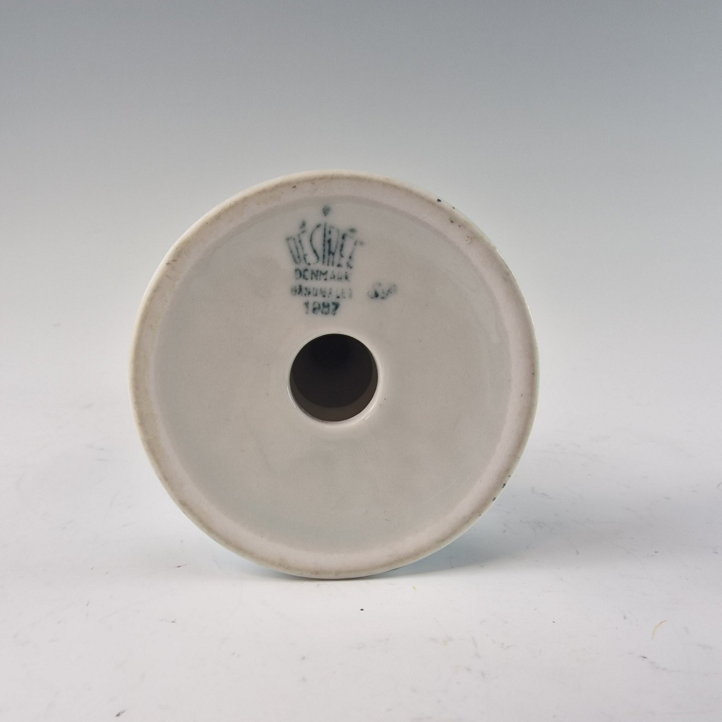 Stellets runde former er dækket med en silkeblød glasur og håndmalet med er lys almueblå farve lagt under glasuren. Stellet er ovnfast