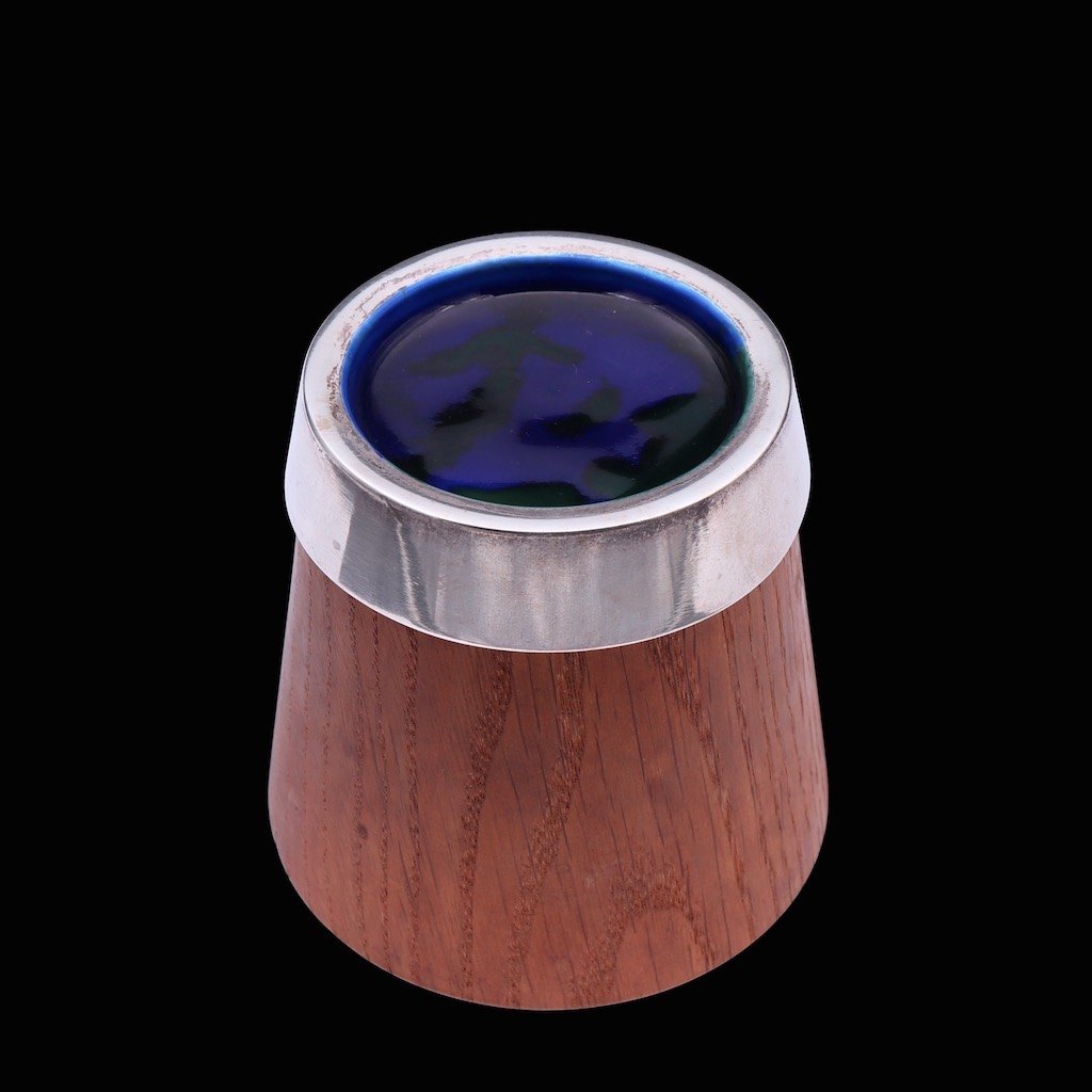 Hans Peter Springborg. Teak Jar with Enamelled Sterling Silver Lid.Sterling Silver Lid with Enamel designed by Hans Peter Springborg 1968 - 1988.