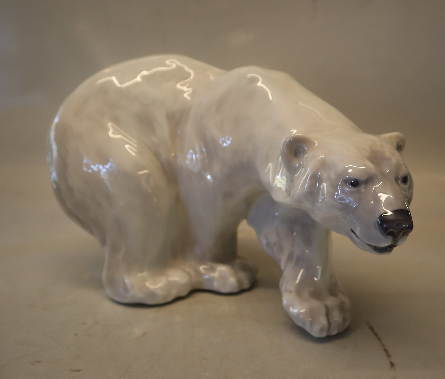 Kgl. figur fra Royal Copenhagen 1137 RC Isbjørn stående, Design Knud Kyhn før 1910 I hel og fin stand 17 x 27 cm.
