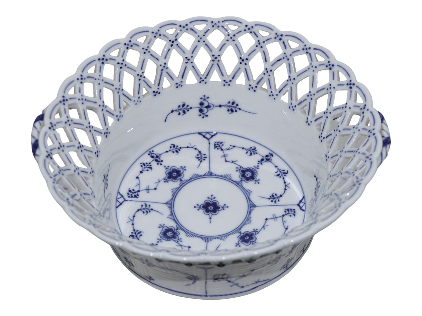 Royal Copenhagen Blue Fluted Full Lace, round fruit bowl.The factory mark shows, that this was made between 1898 and 1923.