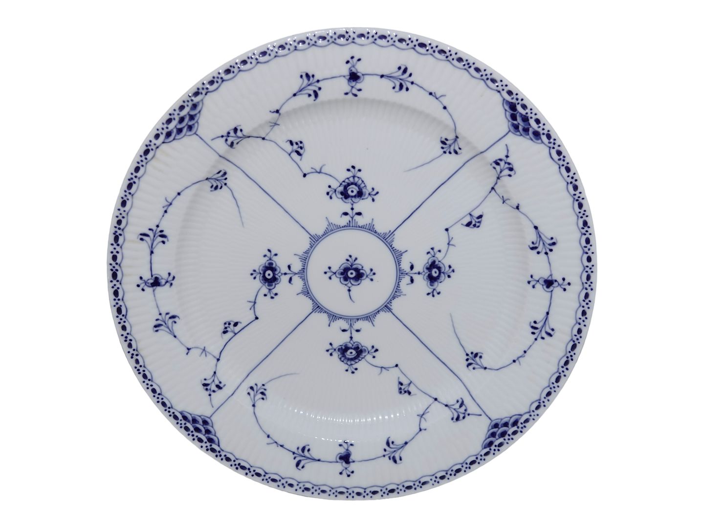 Royal Copenhagen Blue Fluted Half Lace, large round platter.The factory mark shows, that this was produced in 1958.