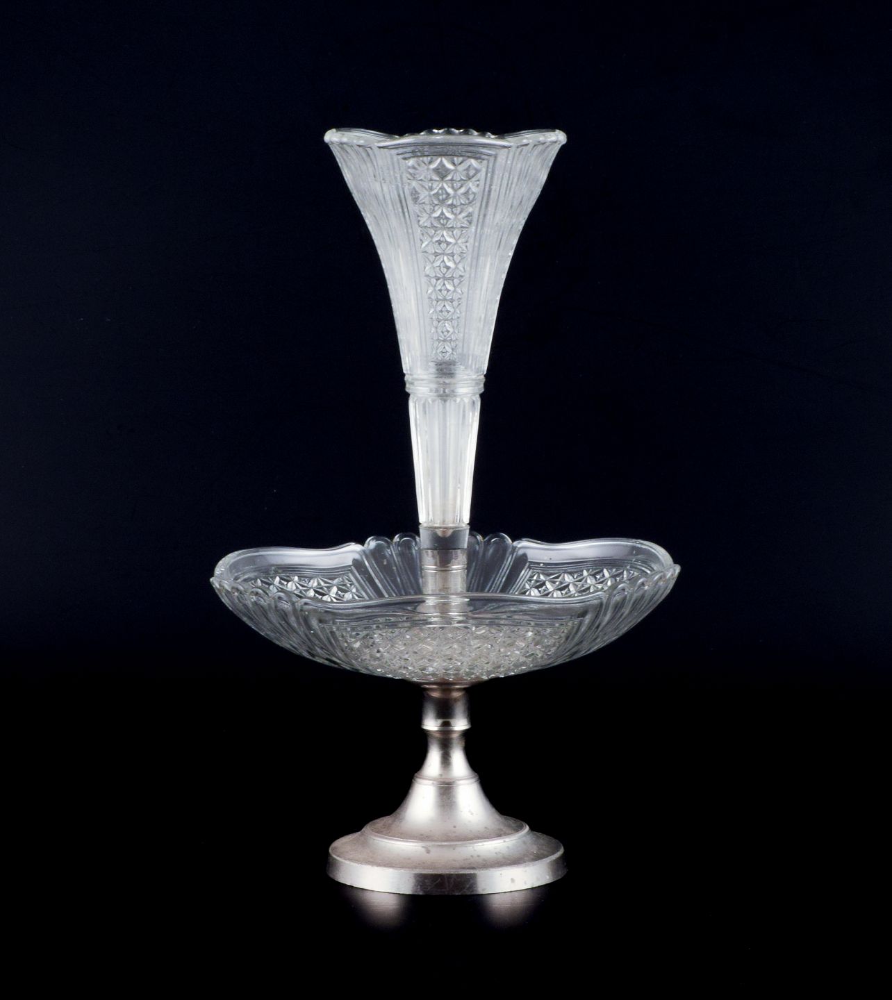 Val St. Lambert, Belgium. Elegant two-part Art Deco centerpiece in art glass. Handmade crystal glass with air bubbles from production.Ca. 1920s/1930s.
