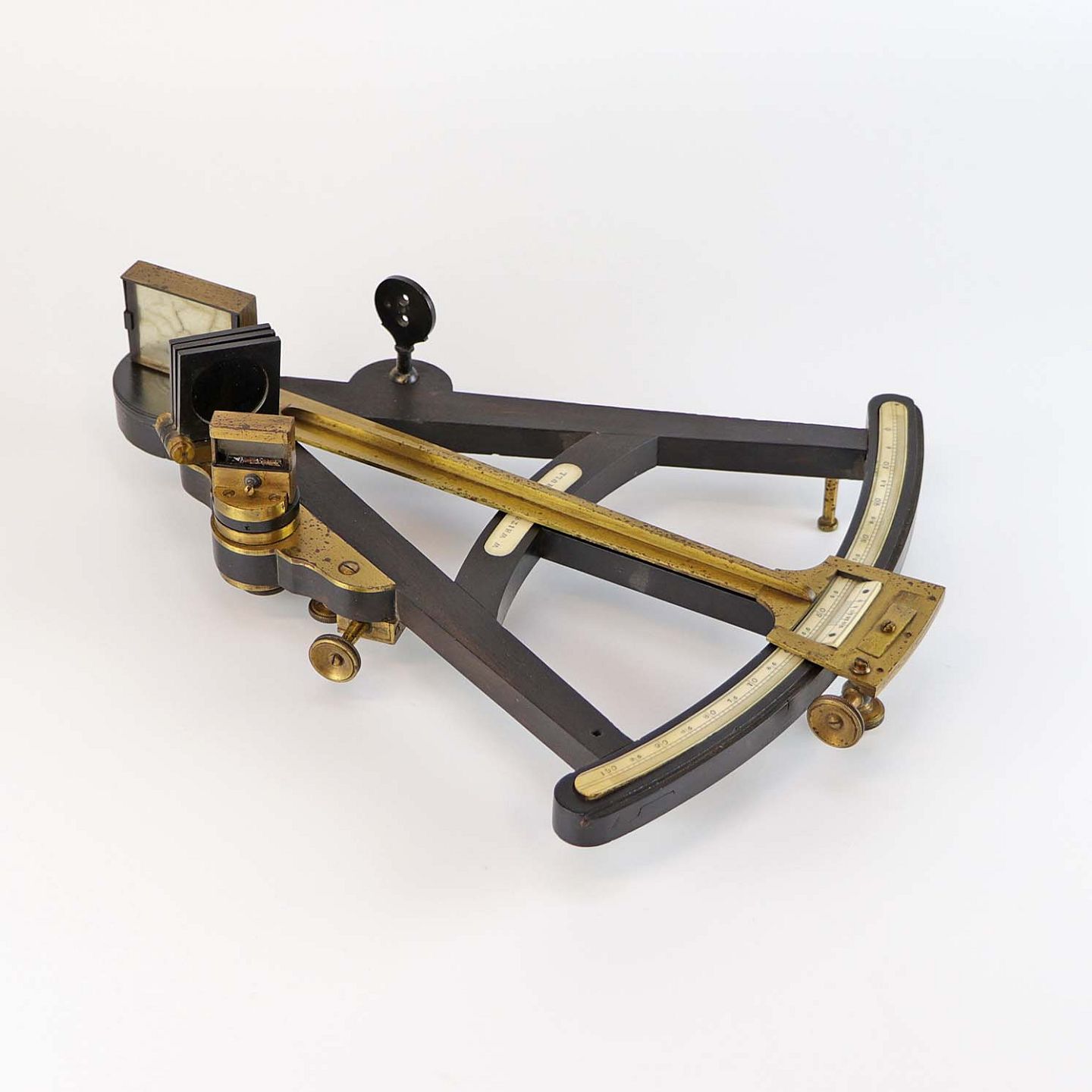 Sekstant i mørkt træ, messing og plast.Formgiver W. White