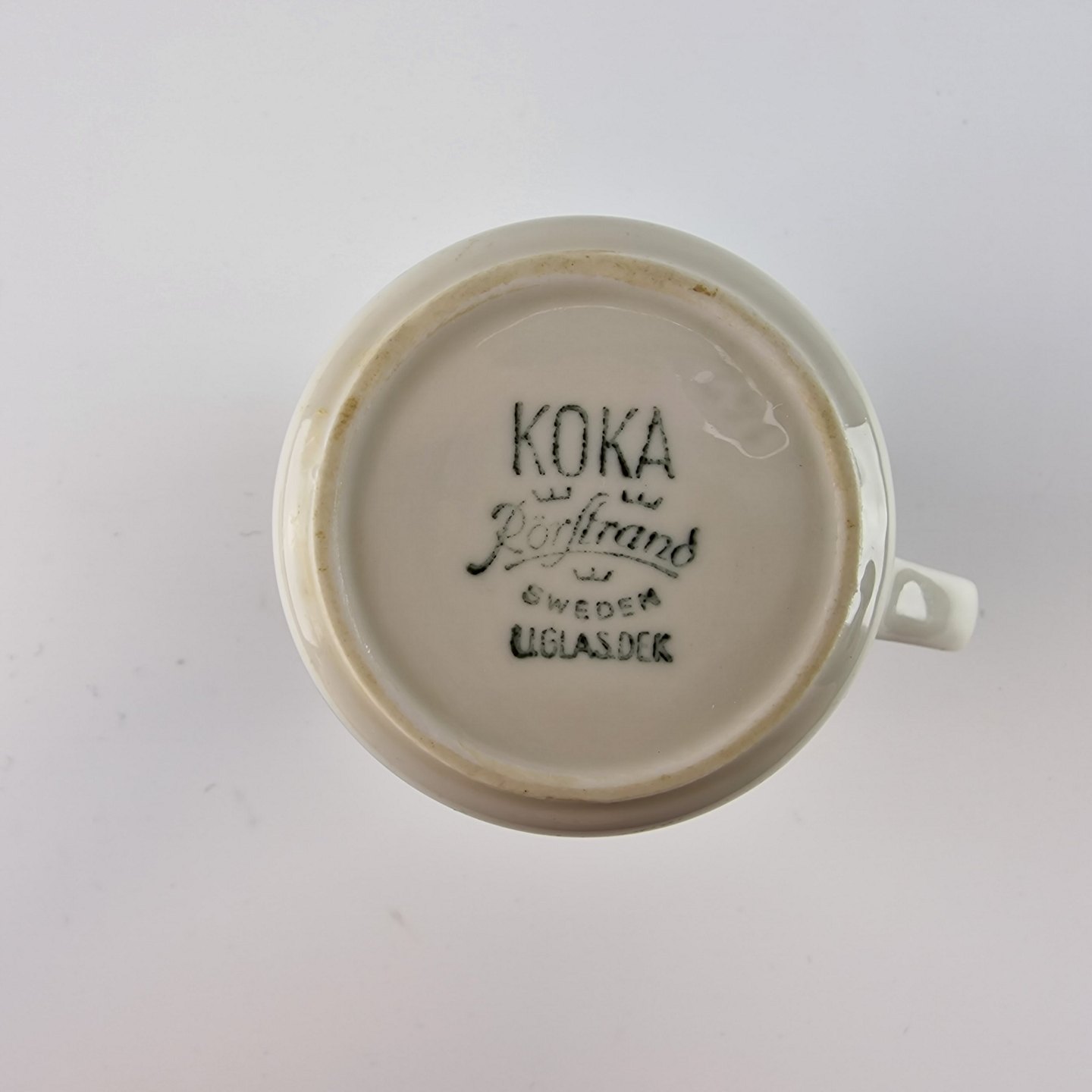 Blå Koka er af hvidt glaseret porcelæn med et bånd af mørk blå