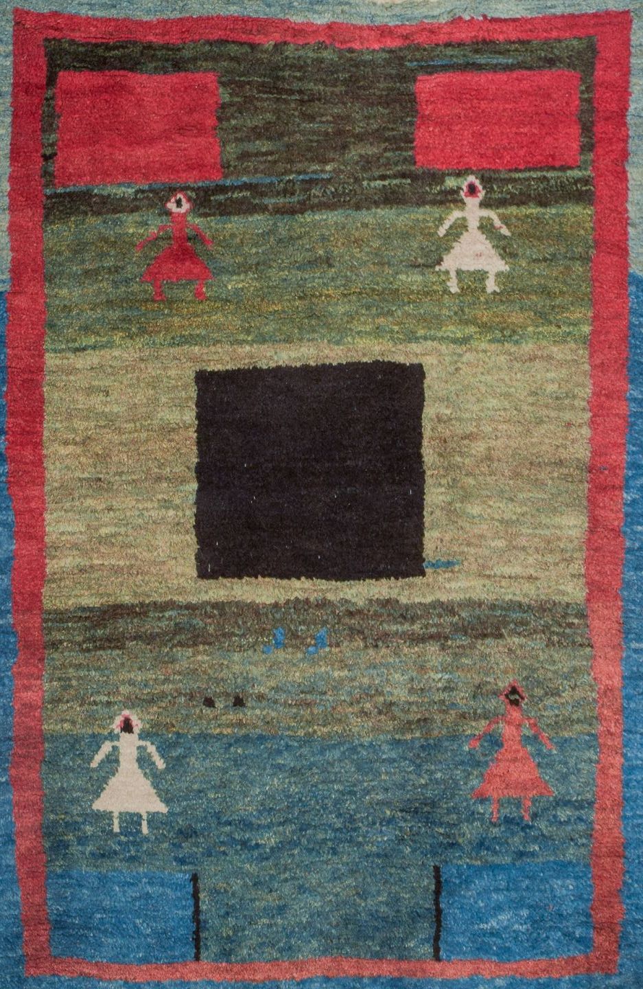 Swedish textile designer. Carpet in pure wool. Handwoven.Designed with figures and geometric fields in various colors.