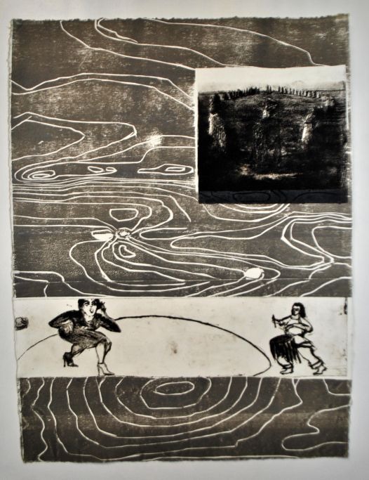Degett, Karen (1954 - 2011) Danmark: Komposition. Radering/fotogravure på papir. Prøvetryk. Usigneret. 66 x 50 cm.  Uindrammet. Proveniens: Kunstnerens bo.