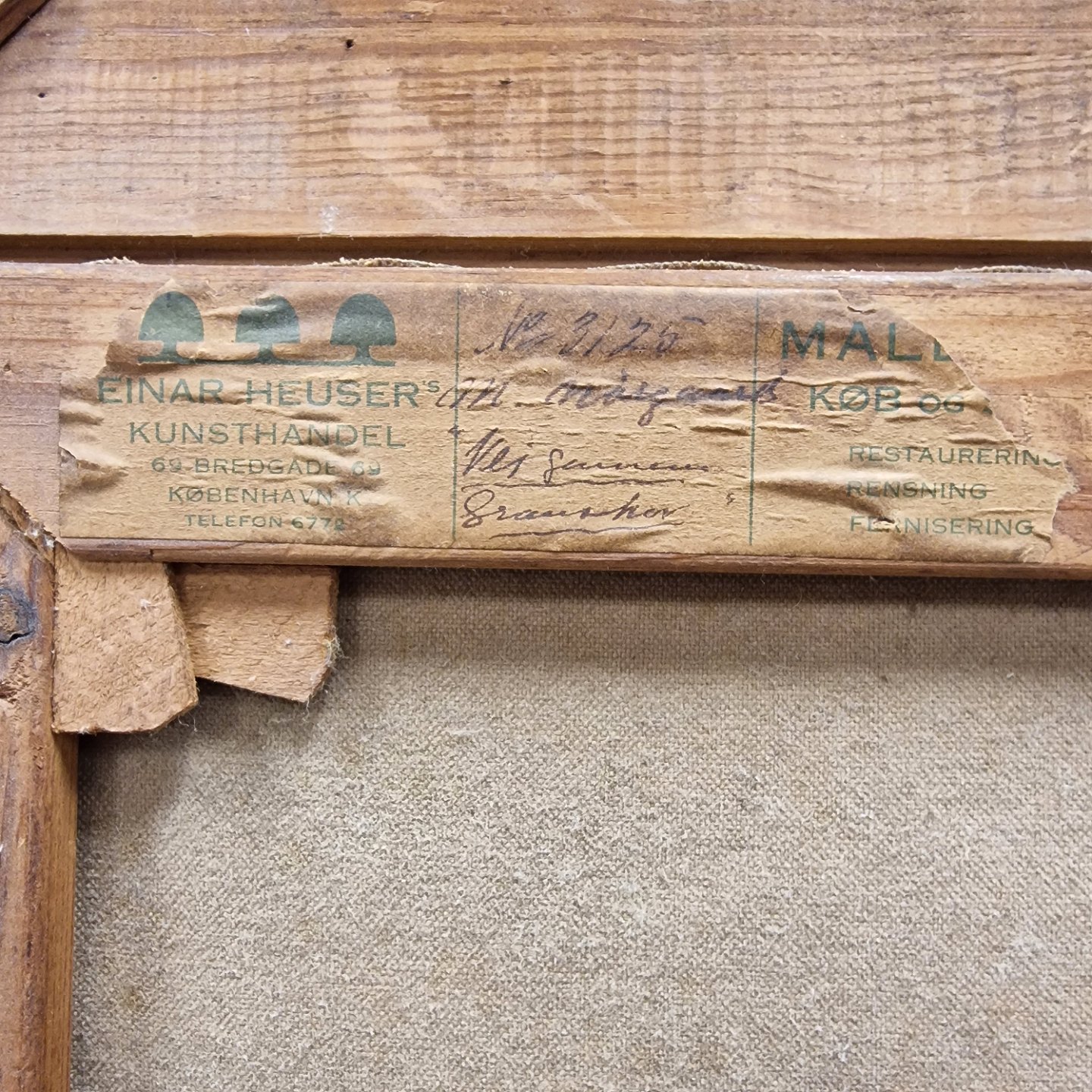 Maleri på lærred med motiv af en vej igennem skov. Dateret 1919Kunstner Mouritz Nørgaard